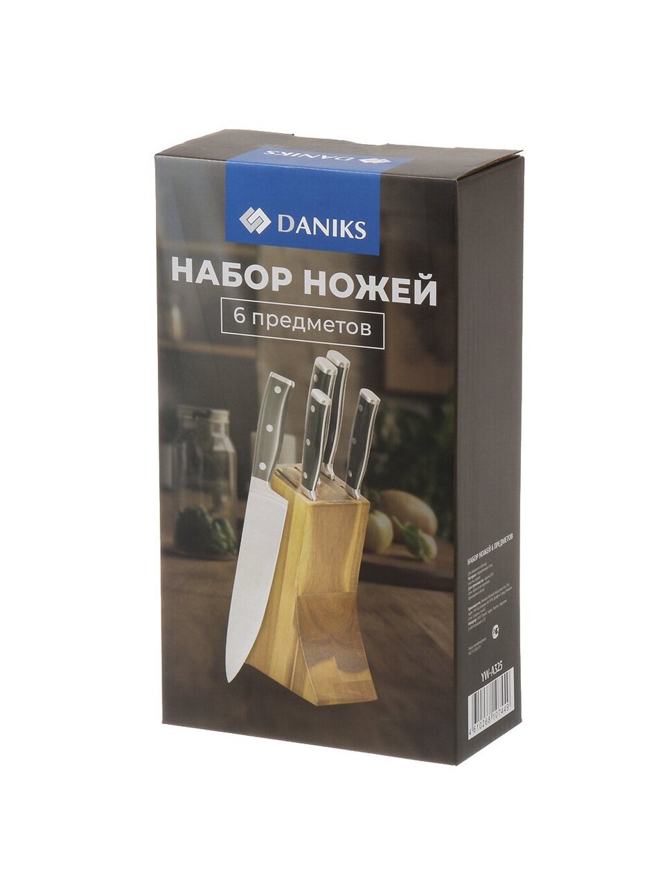 Вы можете приобрести «Набор ножей 6 предметов, 20, 20, 20.5, 12.5, 9 см, сталь, рукоятка пластик, с подставкой, дерево, Daniks, Black, YW-A325» и другие товары в нашем интернет-магазине в Смоленске по низким ценам и с бесплатным самовывозом.