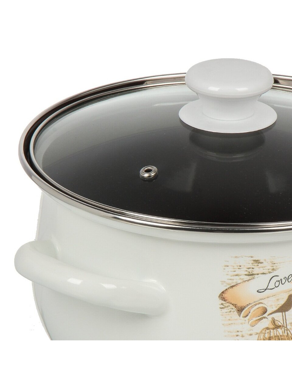 - Три оптимальных объёма (2, 3, 4 л) — удобно варить суп, кашу, компот; стеклянные крышки для контроля готовки