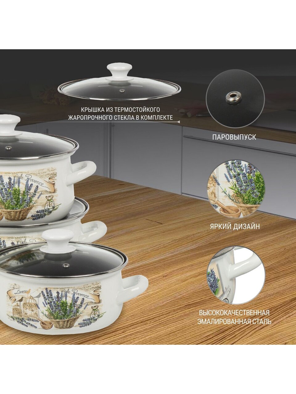 Набор эмалированной посуды 6 предметов «Сбор трав-1-ЭКСТРА», 2/3/4 л — универсальное решение для дома и дачи: долговечность, экономия, стиль.