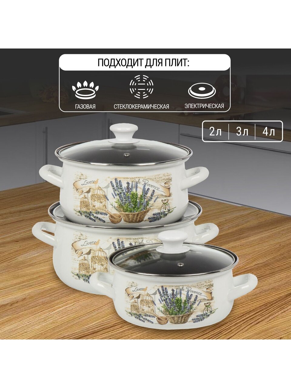 В наборе представлены кастрюли на 2, 3 и 4 литра — оптимальное решение для повседневной готовки и заготовок.