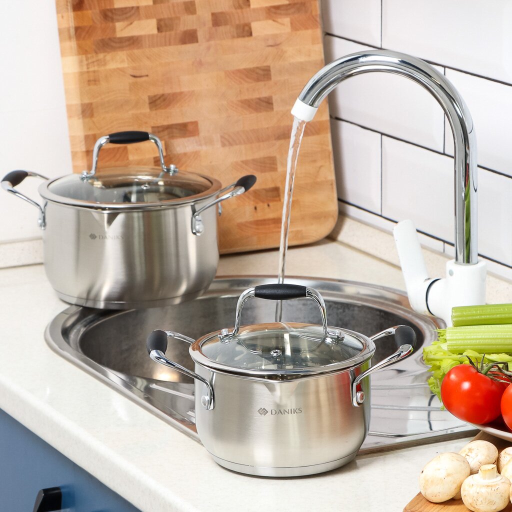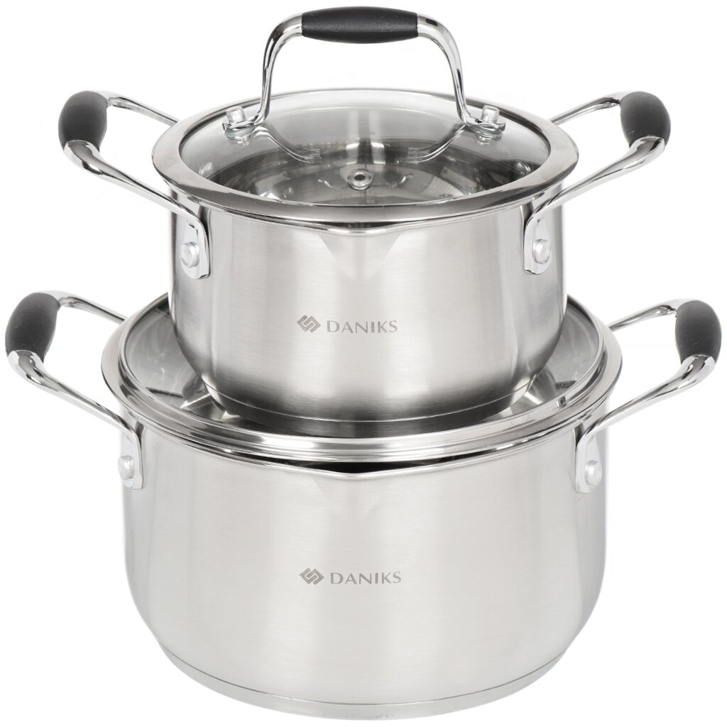Вы можете приобрести «Набор посуды нержавеющая сталь, 4 предмета, кастрюли 2,3.9 л, индукция, Daniks, Монако, SD-A88-4» и другие товары в нашем интернет-магазине в Краснодаре по низким ценам и с бесплатным самовывозом.