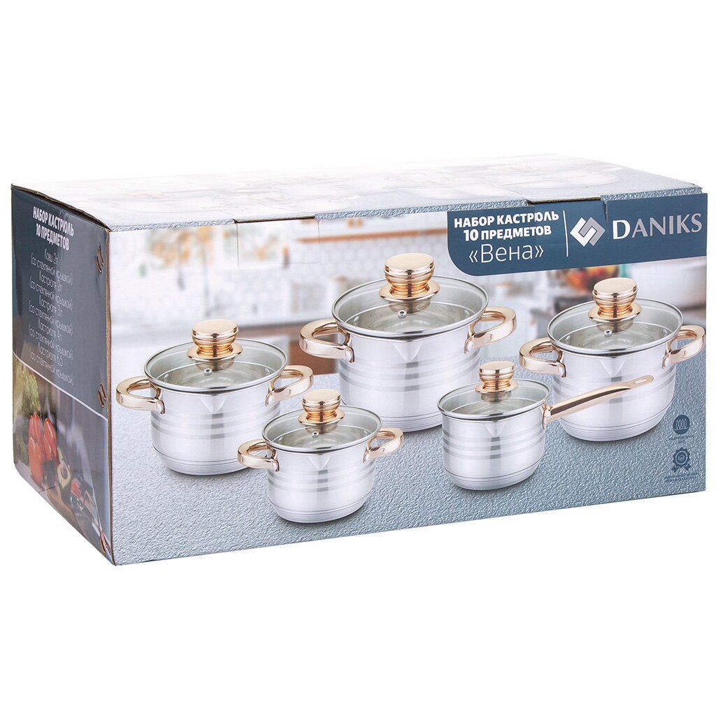 Вы можете приобрести «Набор посуды нержавеющая сталь, 10 предметов, кастрюли 1.9,2.9,3.9,6.5 л, ковш 1.9 л, индукция, Daniks, Вена, SD-Т87-10» и другие товары в нашем интернет-магазине в Краснодаре по низким ценам и с бесплатным самовывозом.