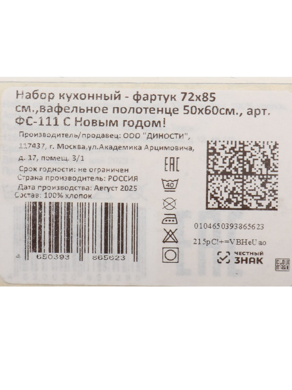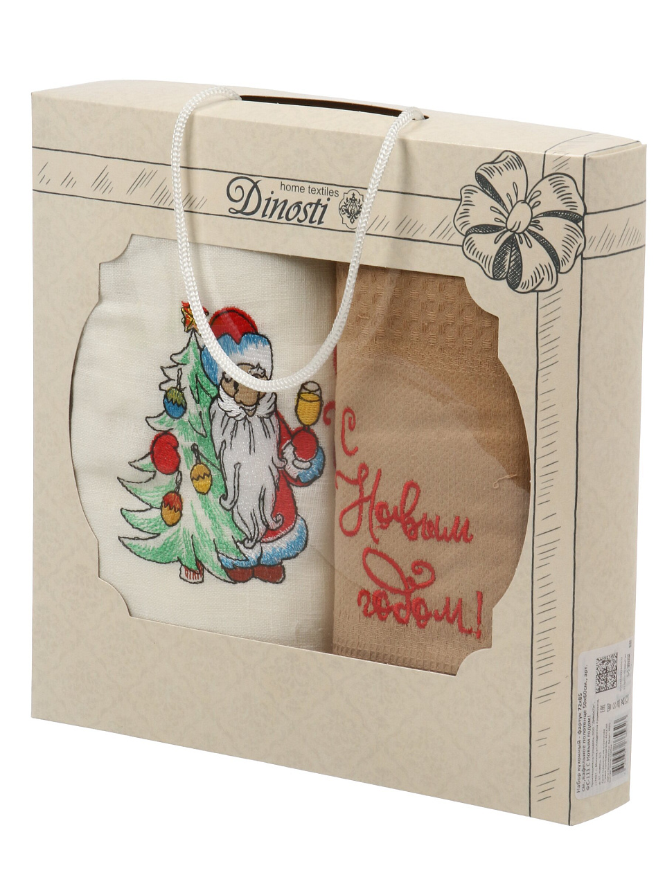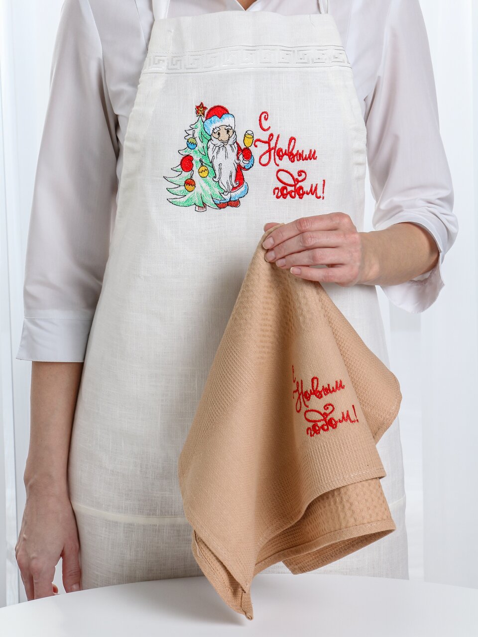 Подарочный кухонный набор Dinosti: фартук 72х85 см + полотенце 50х60 см, 100% хлопок — стиль и уют для новогодней кухни, выгодно купить для дома или в подарок.