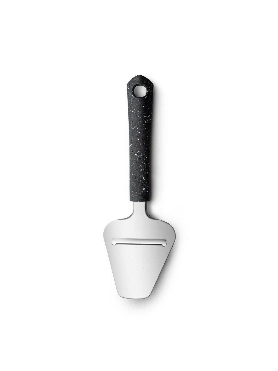 Сырорезка из нержавеющей стали с прорезью на рабочей части исключает слипание ломтиков во время нарезки. Широкая форма поможет легко разложить кусочки. Ручка выполнена из пластика. Можно мыть в посудомоечной машине.