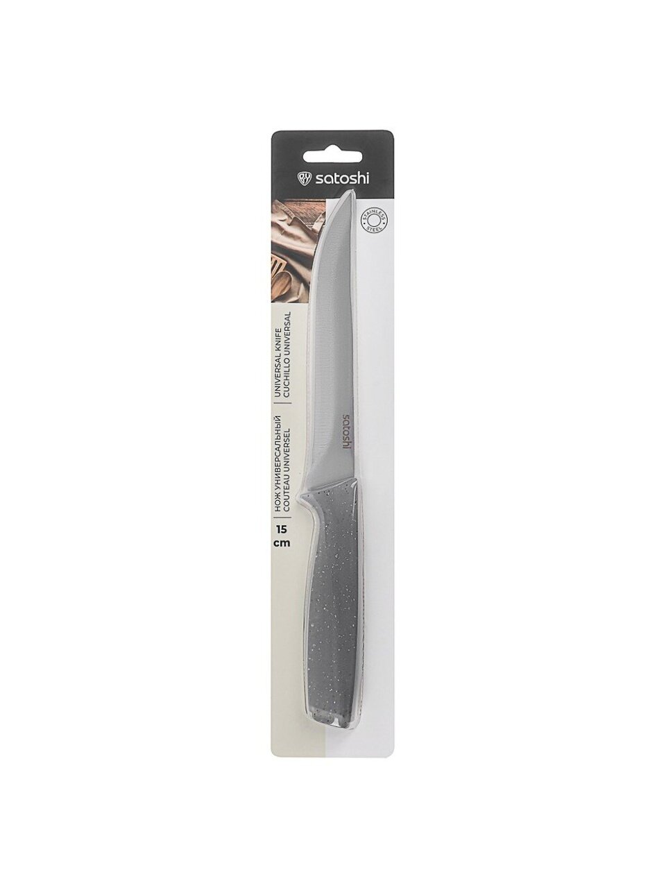 Универсальный кухонный нож Satoshi Ивуа 15 см: точная нарезка, долговечная нержавеющая сталь, удобная пластиковая рукоять — оптимальный выбор для дома и дачи.