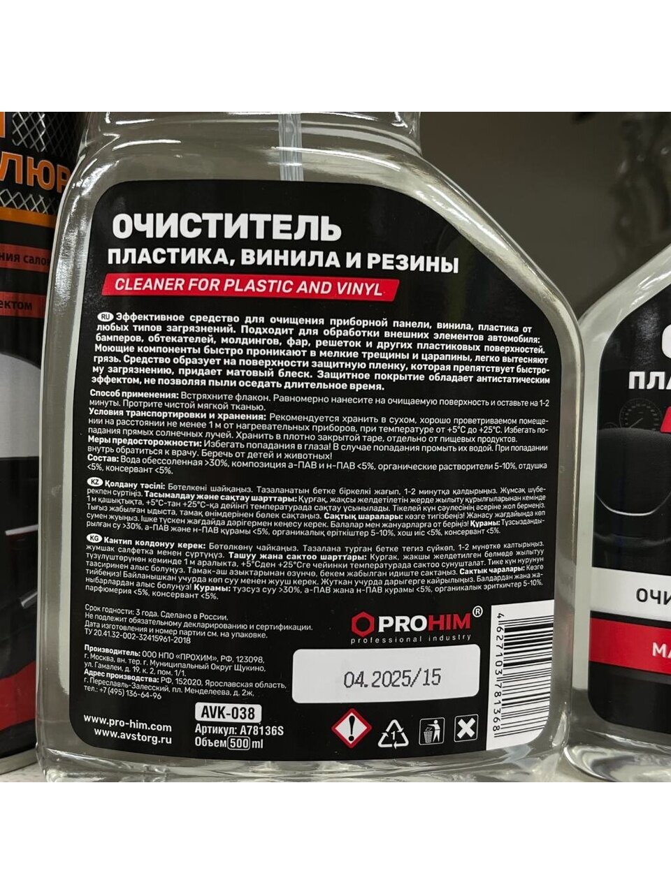 Вы можете приобрести «Очиститель для винила, пластика и резины, 500 мл, AVS, AVK-038, A78136S» и другие товары в нашем интернет-магазине в Казани по низким ценам и с бесплатным самовывозом.