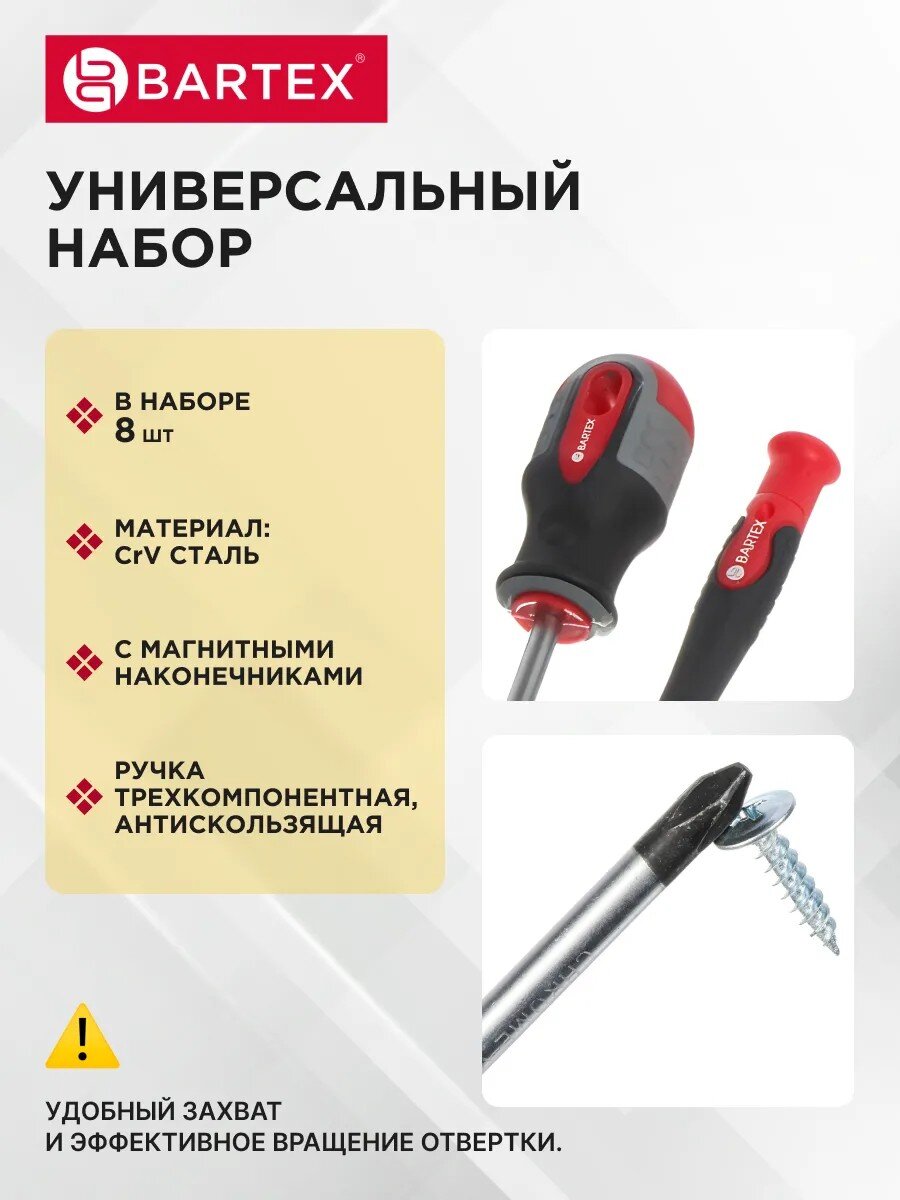 Вы можете приобрести «Набор отверток 8 предметов, Bartex, трехкомпонентная ручка, CrV» и другие товары в нашем интернет-магазине в Клинцах по низким ценам и с бесплатным самовывозом.