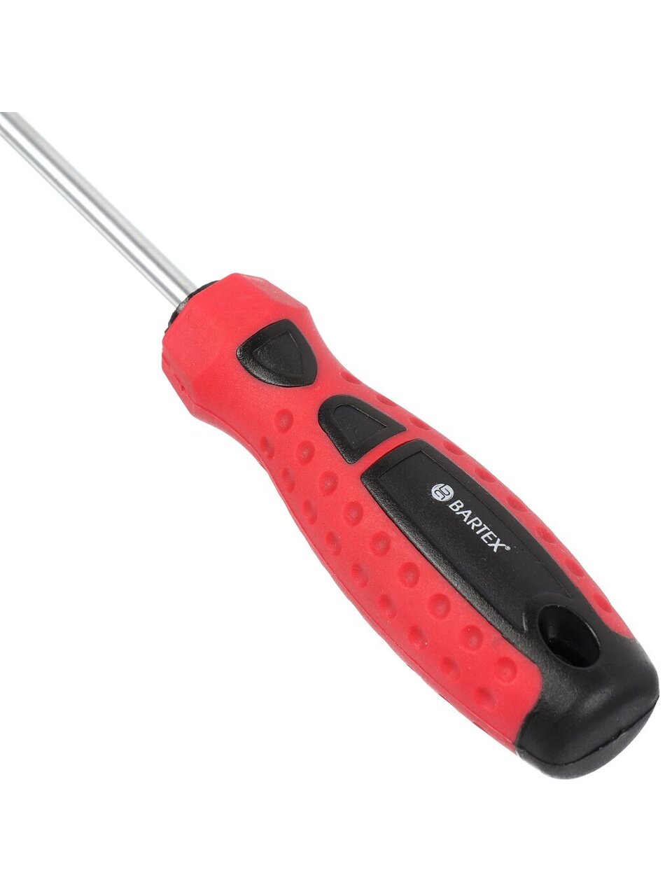 Крестовая отвертка Bartex PH1 1х100 мм — надежный инструмент для точных работ дома и на даче. Прочный стержень из CrV стали гарантирует долговечность, а антискользящая двухкомпонентная рукоятка обеспечивает комфорт и безопасность при использовании. Магнитный наконечник облегчает работу с крепежом. Идеальный выбор для любительских задач и мелкого ремонта.