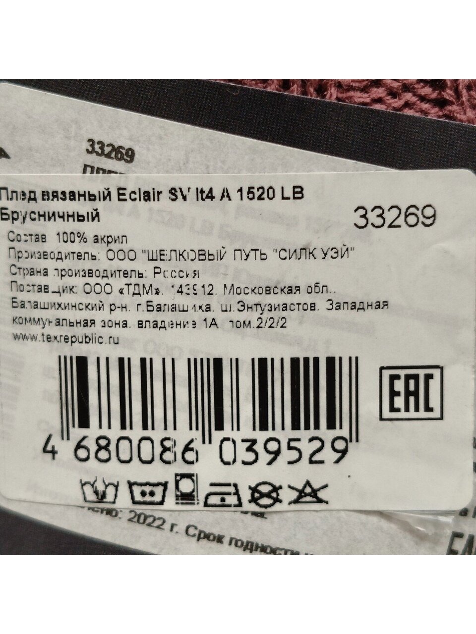 Вы можете приобрести «Плед 1.5-спальный, 150х200 см, акрил, 100% полиэстер, Eclair, Вязаный, брусничный, 33 269» и другие товары в нашем интернет-магазине в Обнинске по низким ценам и с бесплатным самовывозом.