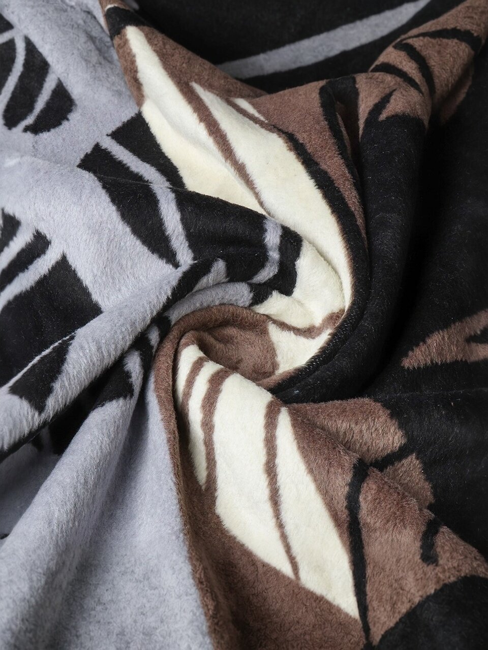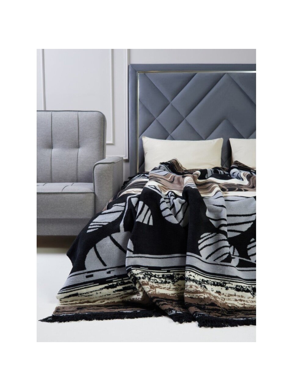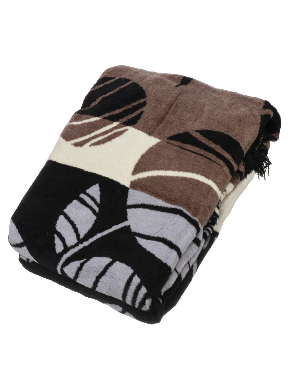 - Универсальность: стильный коричневый плед с абстрактным рисунком — для дома, дачи, пикника или презентабельного подарка