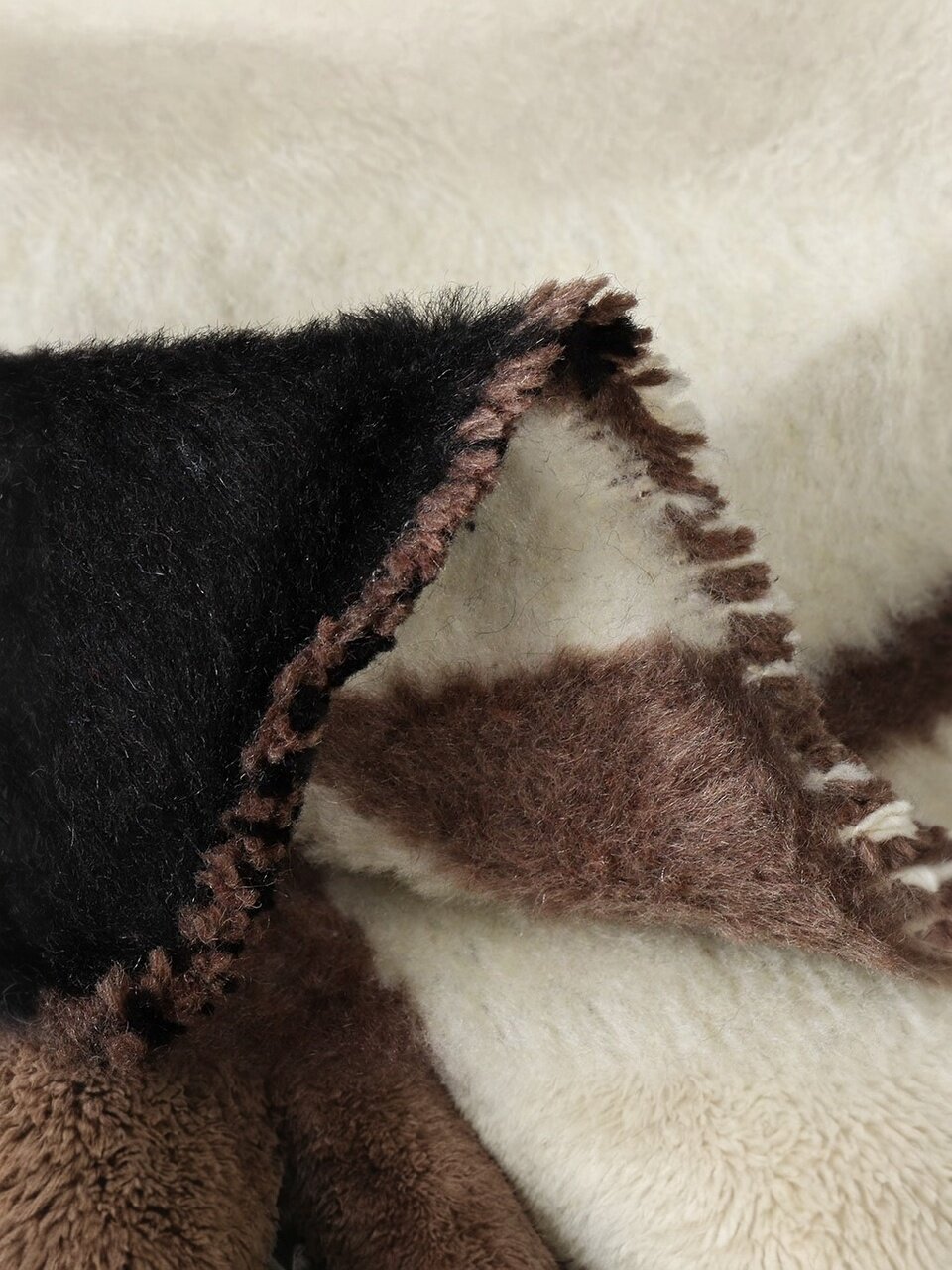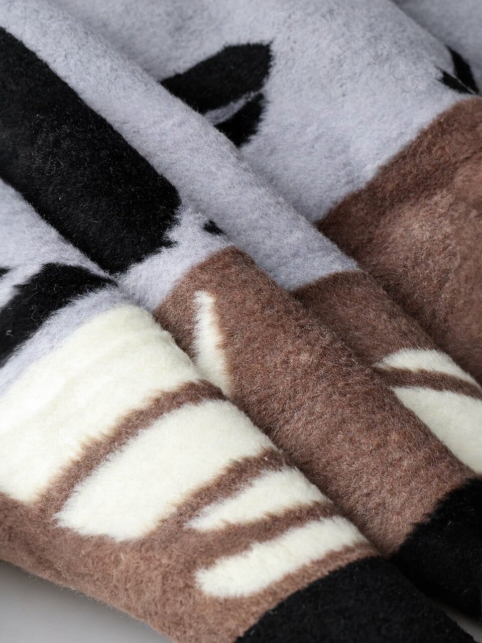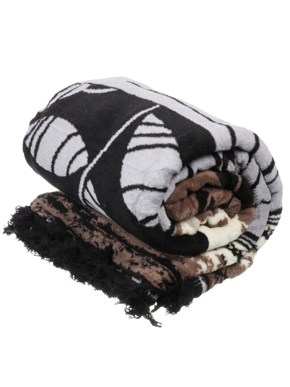 - Универсальность: стильный коричневый плед с абстрактным рисунком — для дома, дачи, пикника или презентабельного подарка
