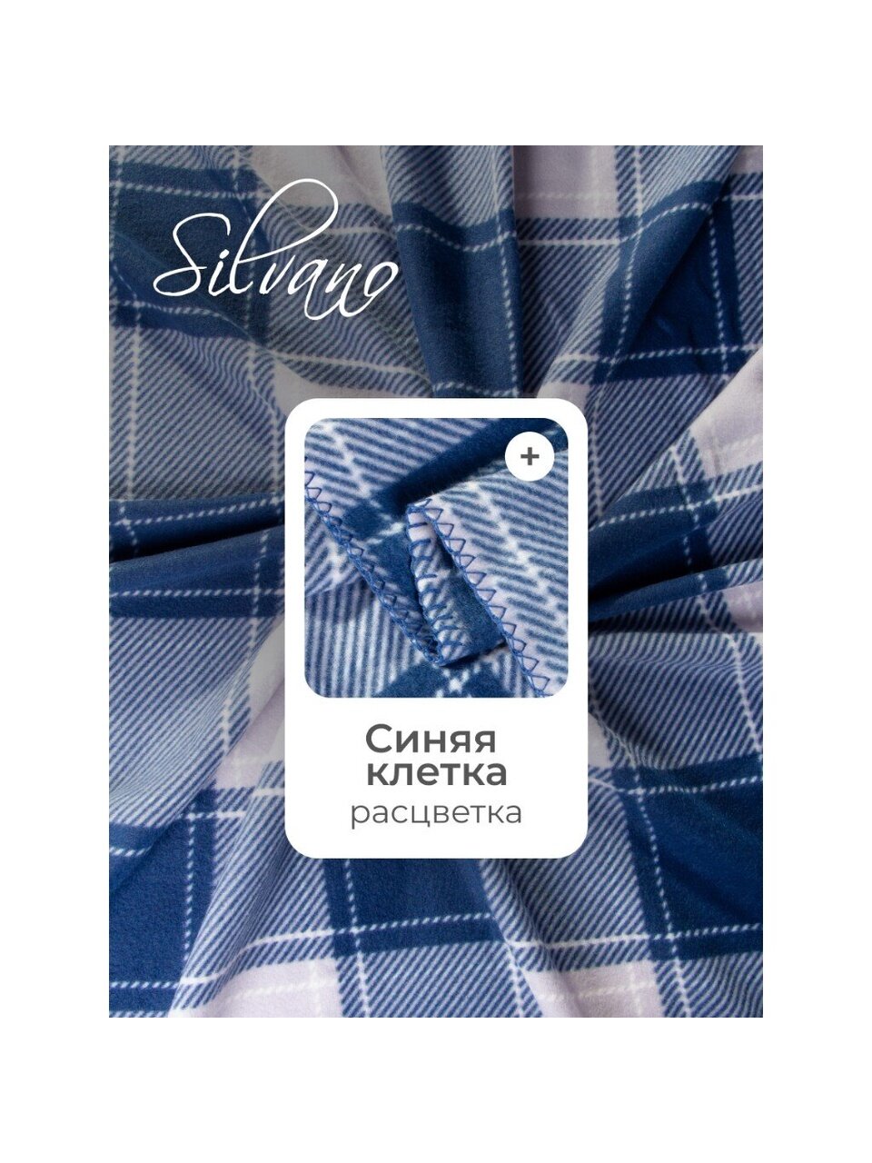 - Мягкий флисовый плед Silvano — идеальный баланс уюта и долговечности, стильная синяя клетка впишется в любой интерьер