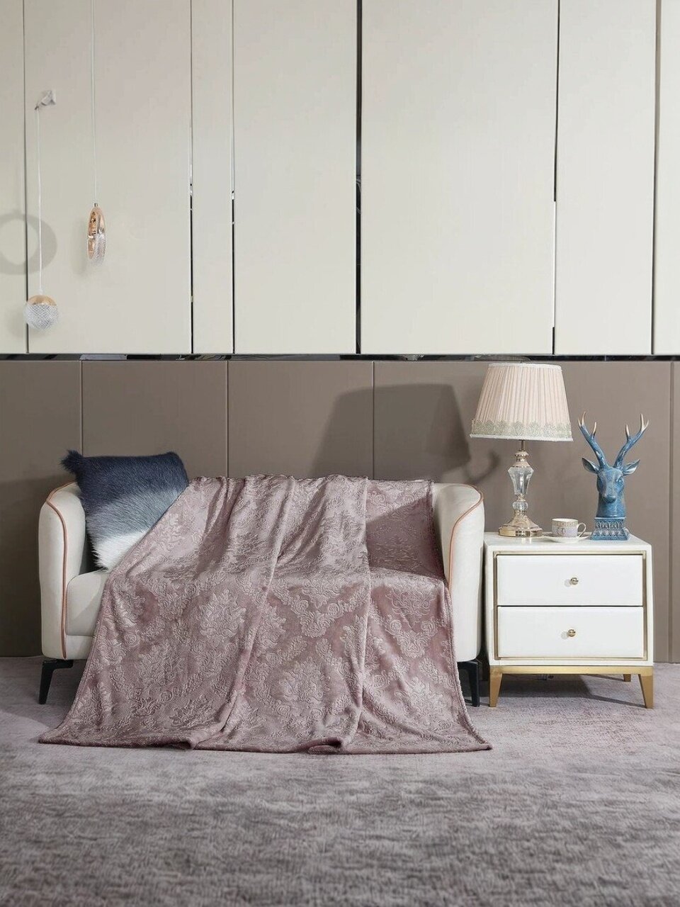 Плед евро 200х220 см Silvano Fresco: уют, тепло и стильный бежевый жаккард для спальни или гостиной. Недорогой и долговечный выбор для дома и дачи.