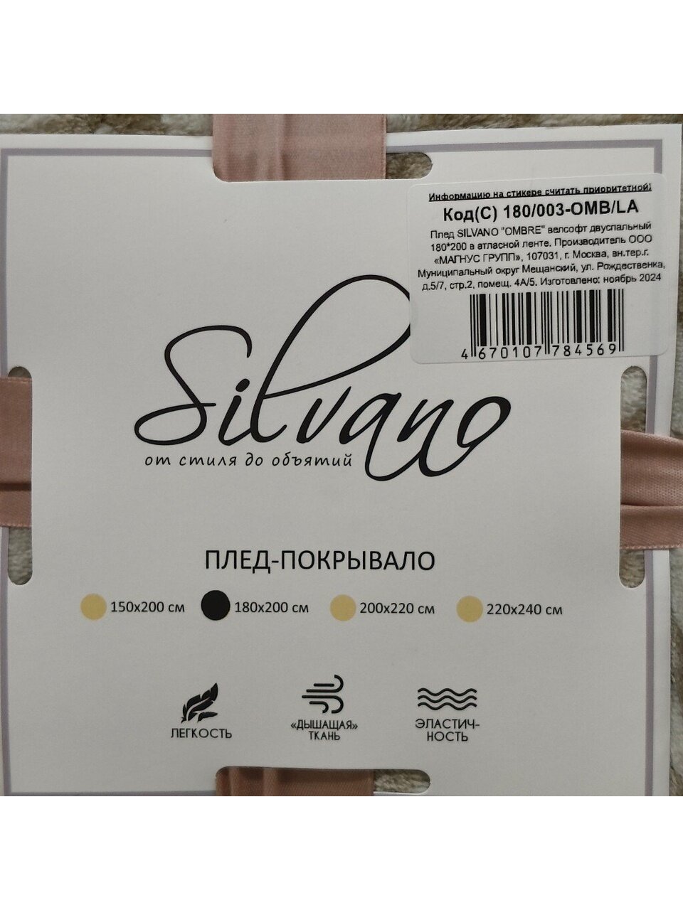 Плед Silvano Ombre 180х200 см — это сочетание современного дизайна, практичности и комфорта. Мягкий велсофт жаккард с коротким ворсом приятен на ощупь, не вызывает раздражения и подходит для ежедневного использования. Благодаря плотности 270 г/м² плед хорошо сохраняет тепло и быстро сохнет после стирки, что важно для семей с детьми или домашних животных. Если вы ищете, какой плед выбрать для дома или дачи, обратите внимание на этот вариант: он недорогой, стильный и не требует сложного ухода.