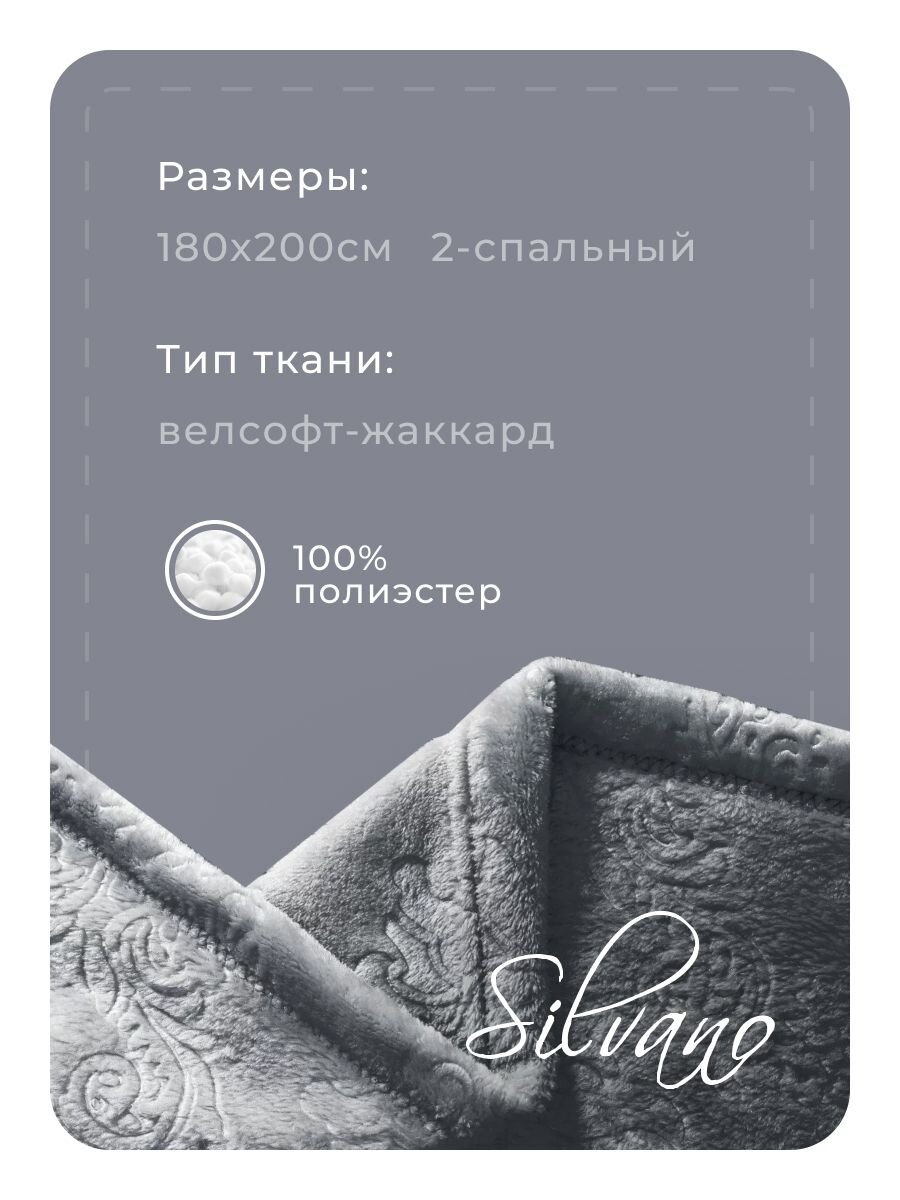 Вы можете приобрести «Плед 2-спальный, 180х200 см, велсофт жаккард, 100% полиэстер, Silvano, Fresco, серый, 180/098-FRE/LA» и другие товары в нашем интернет-магазине в Курске по низким ценам и с бесплатным самовывозом.