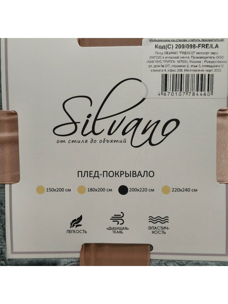 Выбирайте плед Silvano Fresco, чтобы создать атмосферу уюта и тепла в доме. Закажите с быстрой доставкой — получите надежный и стильный аксессуар для отдыха и комфорта.