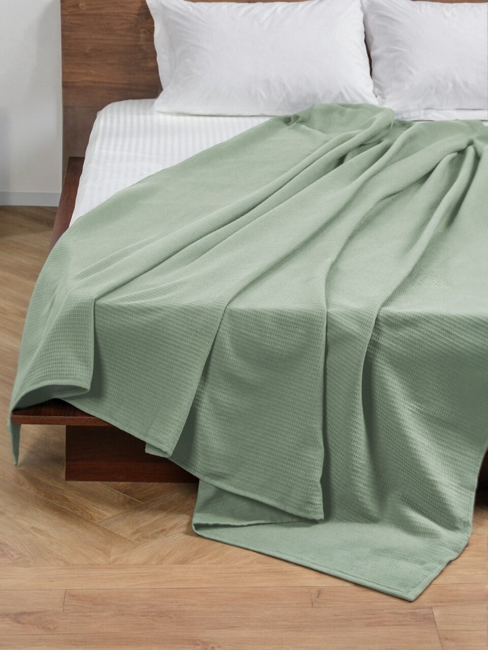 Вафельная ткань из 100% хлопка обеспечивает оптимальную мягкость и легкость, позволяя коже дышать и поддерживая комфортную температуру в любое время года. Натуральный хлопок отличается гипоаллергенностью и безопасностью для здоровья, что особенно важно для ежедневного использования. Простынь-плед не содержит синтетических добавок, а значит, подходит даже для людей с чувствительной кожей.