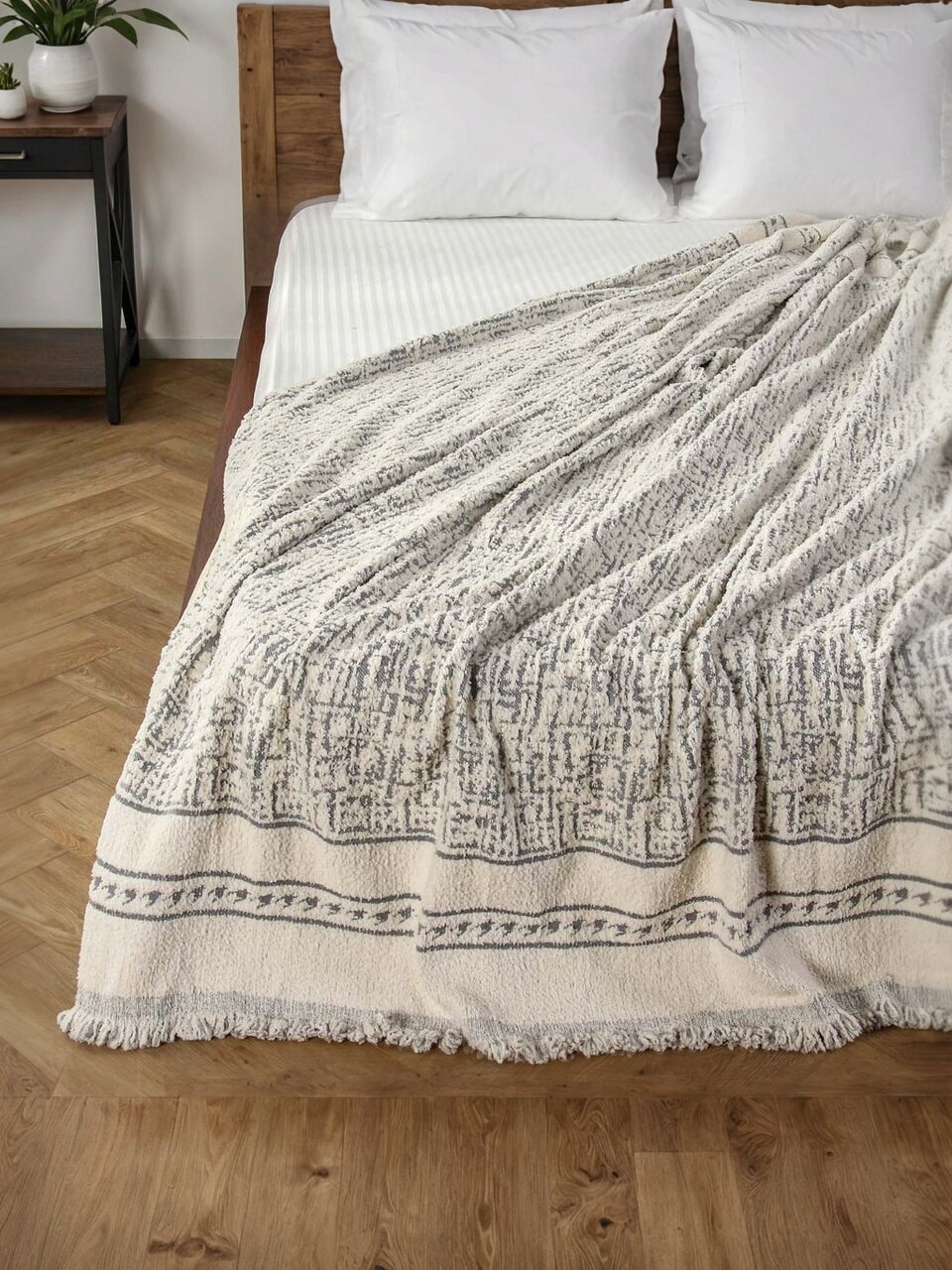 Плед евро 200х220 см Silvano: 100% хлопок, стильный серый, уют для дома и дачи. Максимальный комфорт, натуральность, выгодная цена — идеальный выбор!