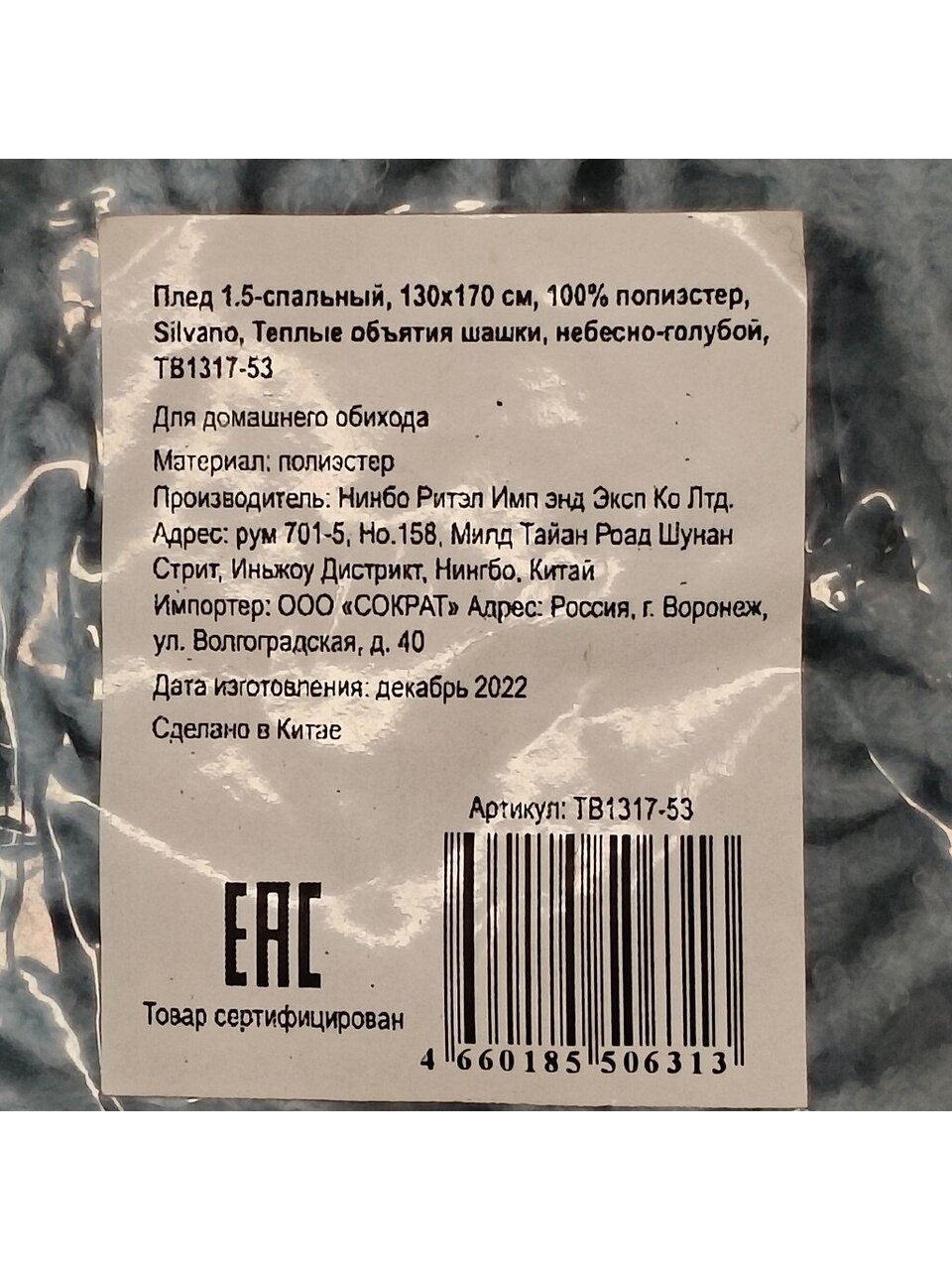 Вы можете приобрести «Плед 1.5-спальный, 130х170 см, 100% полиэстер, Silvano, Теплые объятия шашки, небесно-голубой, вязаный, TB1317-53» и другие товары в нашем интернет-магазине в Борисоглебске по низким ценам и с бесплатным самовывозом.