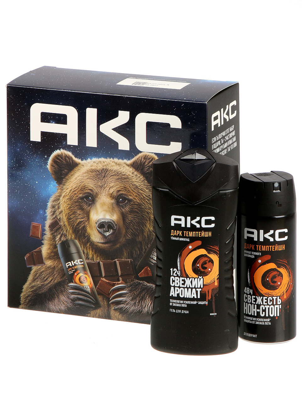 Подарочный набор AXE Dark Temptation: гель для душа 250 мл + дезодорант 150 мл — стильный уход и свежесть для мужчин, идеальный подарок по выгодной цене.