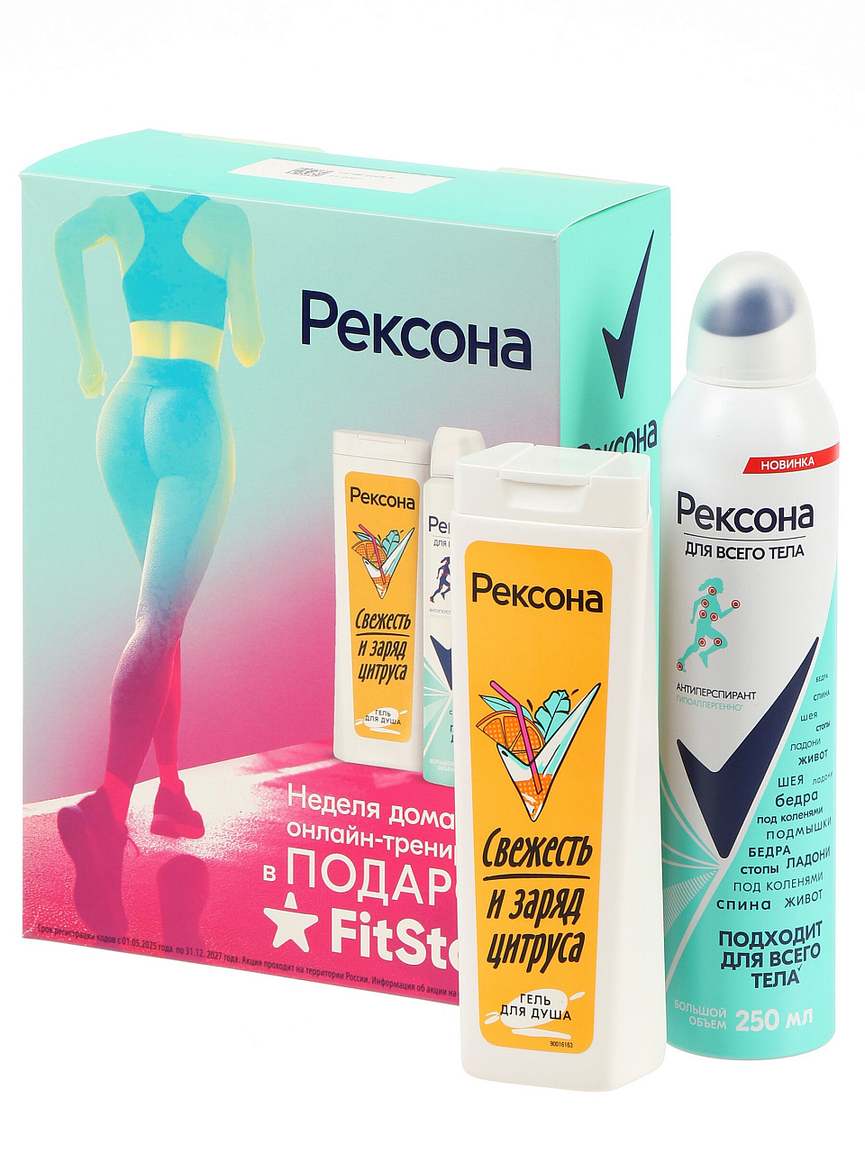 Подарочный набор Rexona Sport + Fitstars для женщин: гель для душа 200 мл и дезодорант-спрей 250 мл — свежесть и защита на весь день по выгодной цене.