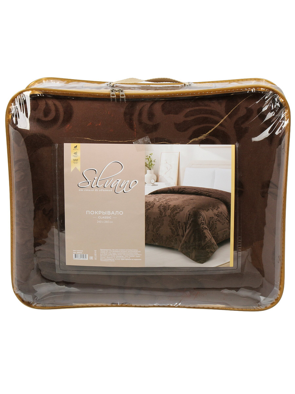 Покрывало евро, 240х260 см, 100% полиэстер, Silvano, Classic, шоколад