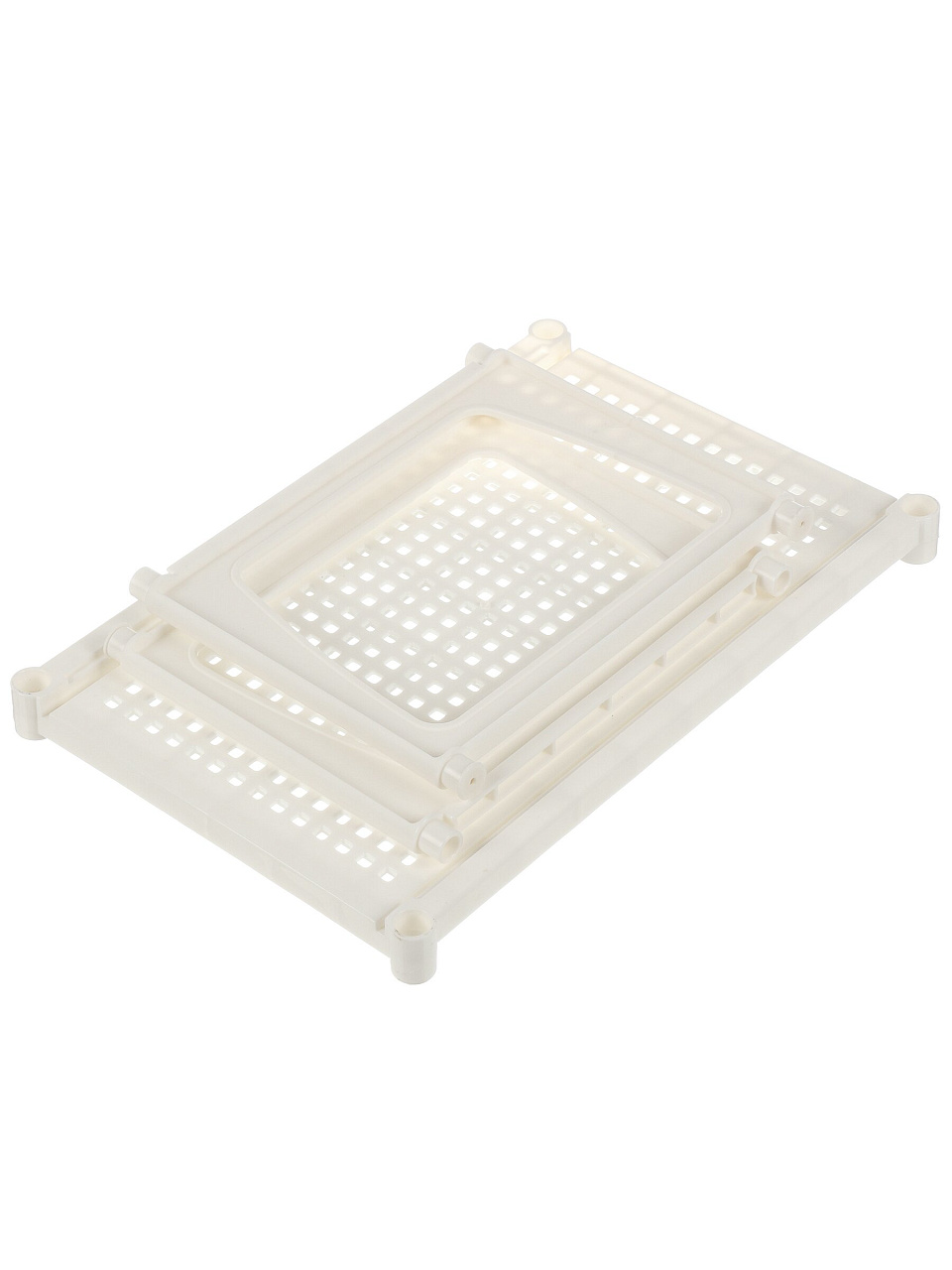 Конструкция полок дает возможность установки двух и более полок друг на друга с помощью пазов.