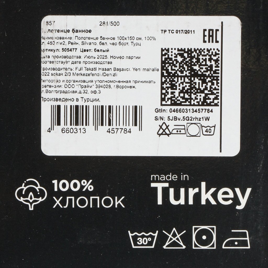 Вы можете приобрести «Полотенце банное 100х150 см, 100%хл, 450 г/м2, Рейн, Silvano, бел, чер борт, Турц» и другие товары в нашем интернет-магазине в Иваново по низким ценам и с бесплатным самовывозом.