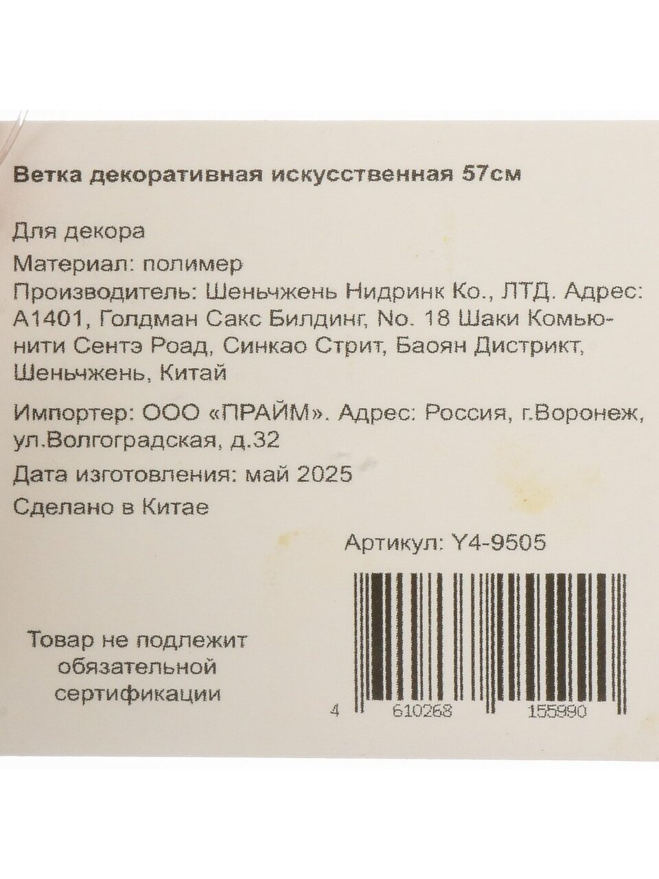 Ветка выполнена из искусственных полимеров, не имеет запаха, не вызывает аллергии и безопасна для детей и домашних животных.