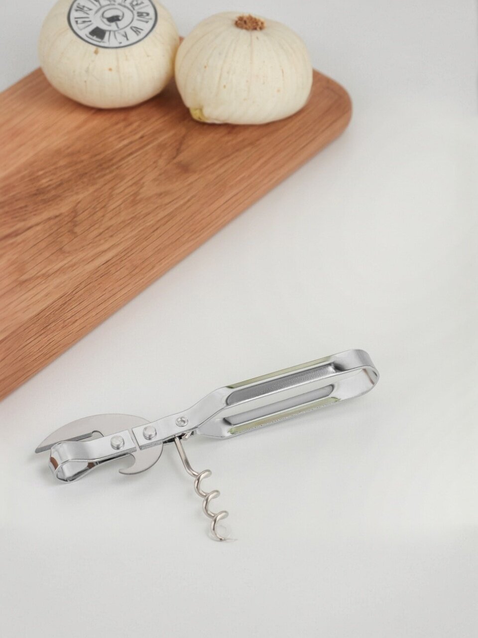 Штопор нержавеющая сталь, 17.9х6.4х2.8 см, с открывалкой для консервов, навеска, Vetta, 882-145 - фото 1 от пользователя