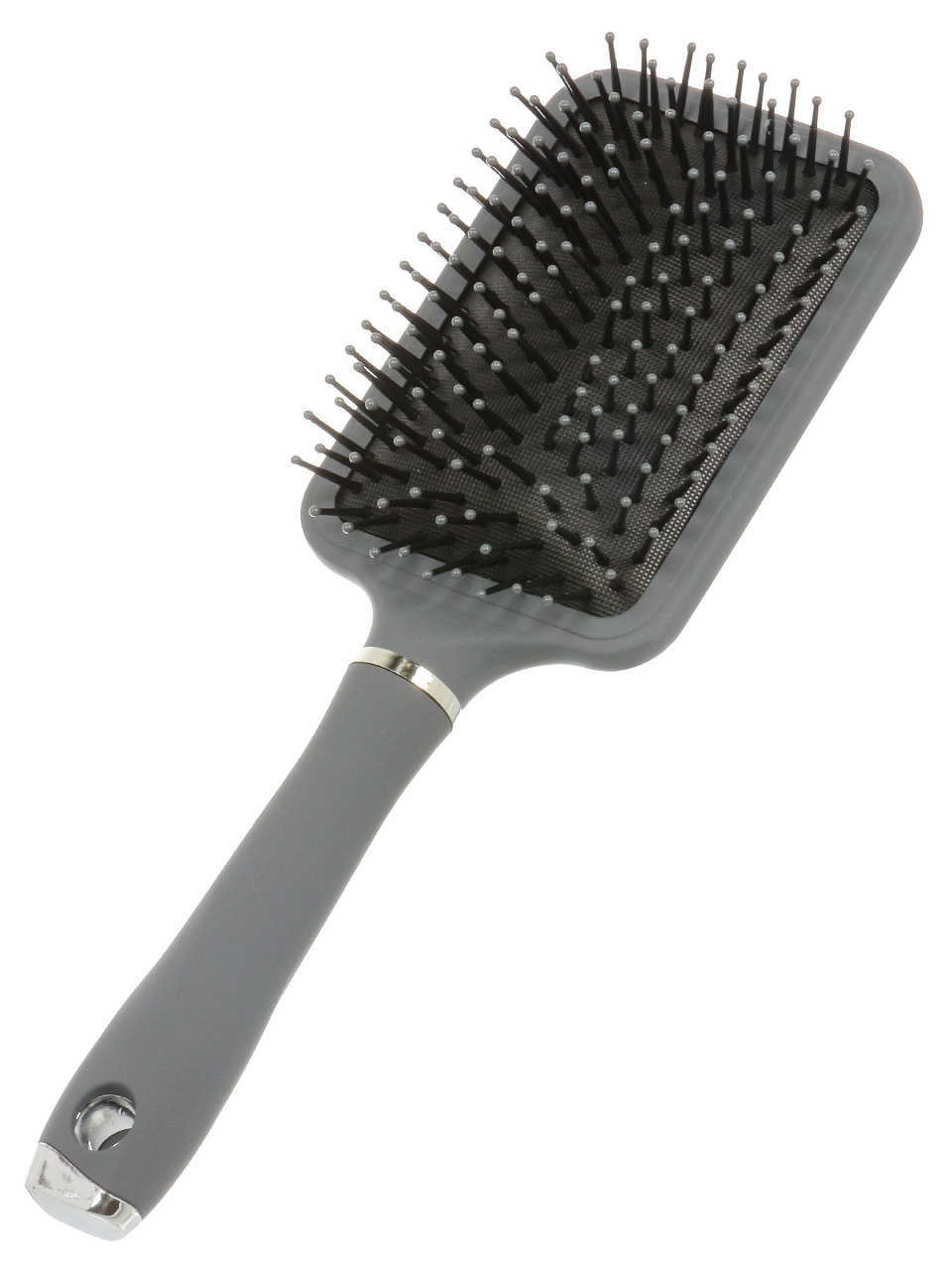 Расческа массажная Studio style: квадратная форма, графитовый цвет, бережный уход за волосами и массаж кожи головы — идеальный выбор для ежедневного использования и подарка.