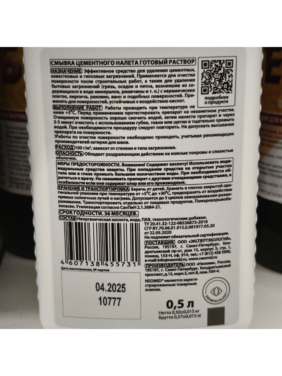 Вы можете приобрести «Смывка от цементного налета, 560, 0.5 л, Neomid» и другие товары в нашем интернет-магазине в Тамбове по низким ценам и с бесплатным самовывозом.