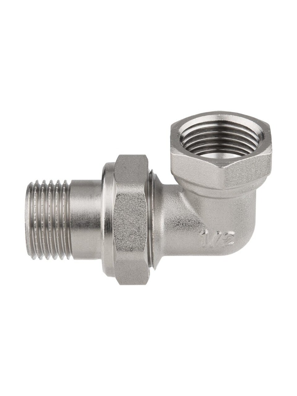 Угловая американка 1/2'' AquaLink — надежное разъемное соединение из латуни с никелированным покрытием для водоснабжения и отопления. Решение для сложных участков монтажа.