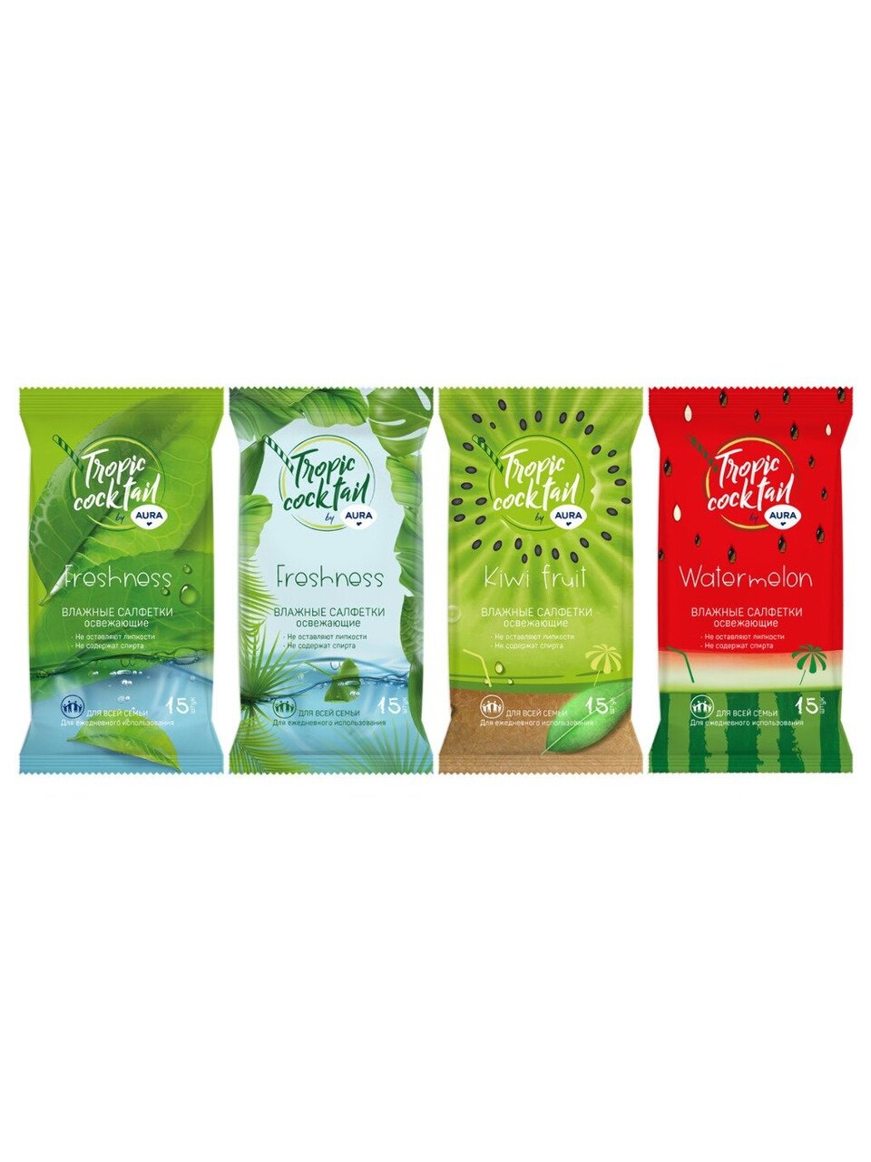 Вы можете приобрести «Салфетки влажные Aura, Тропический коктейль, освежающие, 15 шт, в ассортименте, 6065» и другие товары в нашем интернет-магазине в Россоши по низким ценам и с бесплатным самовывозом.