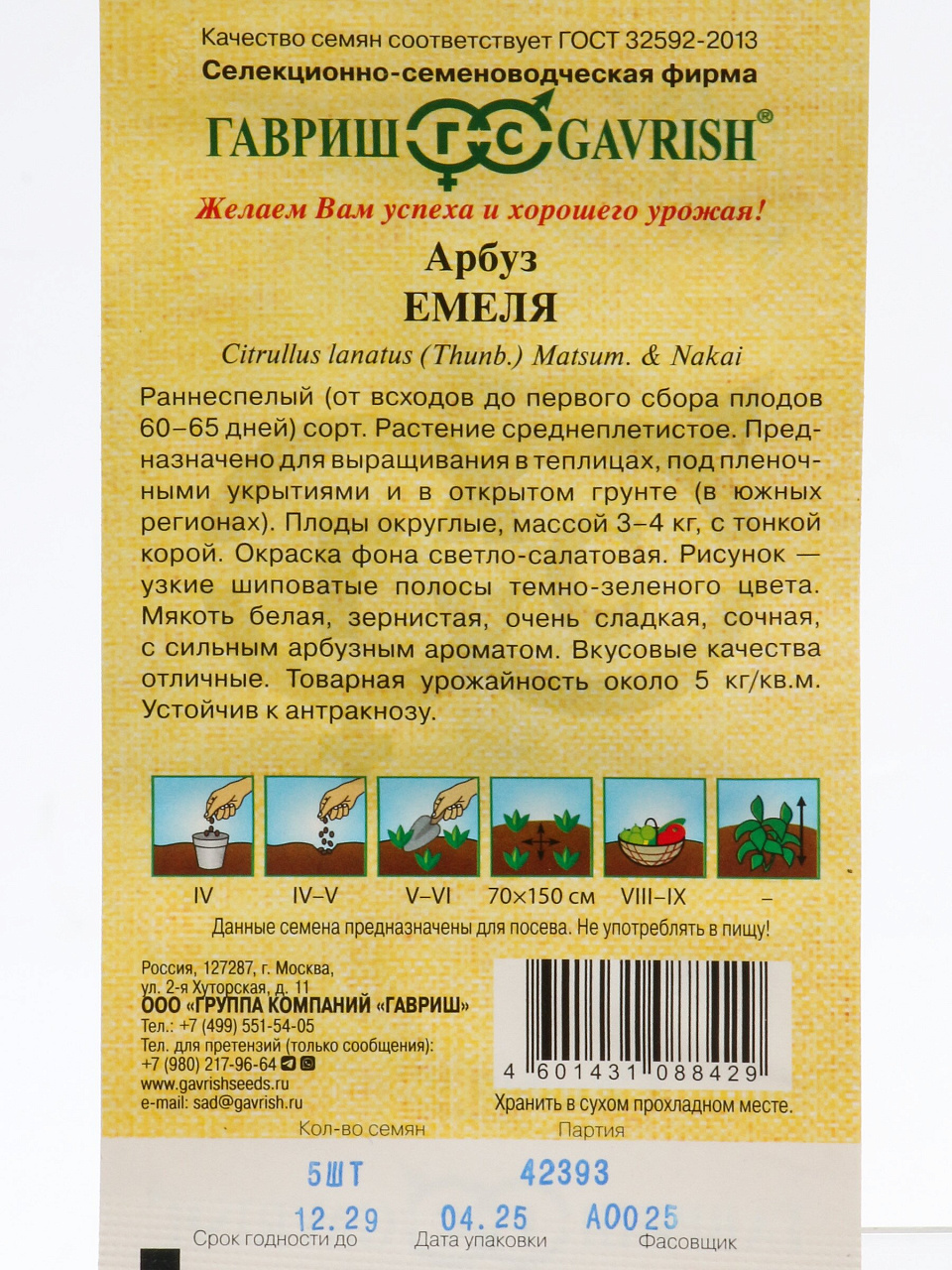Вы можете приобрести «Семена Арбуз, Емеля, 5 шт, Семена от автора, с белой мякотью, цветная упаковка, Гавриш» и другие товары в нашем интернет-магазине в Казани по низким ценам и с бесплатным самовывозом.