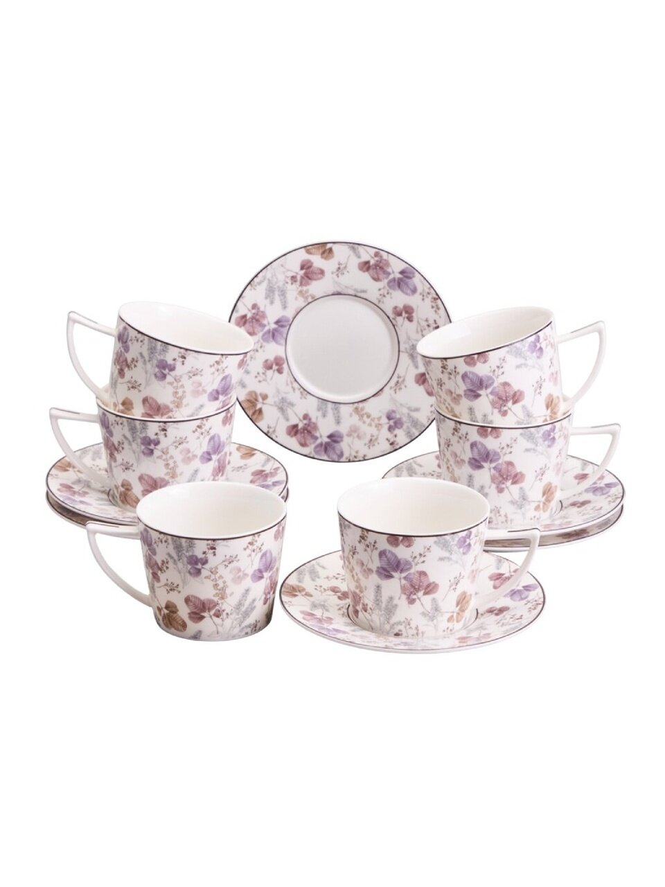 Подарочный чайный сервиз Lefard Blossom на 6 персон: фарфор, 12 предметов, 250 мл — элегантность для вашего стола и идеальный подарок.