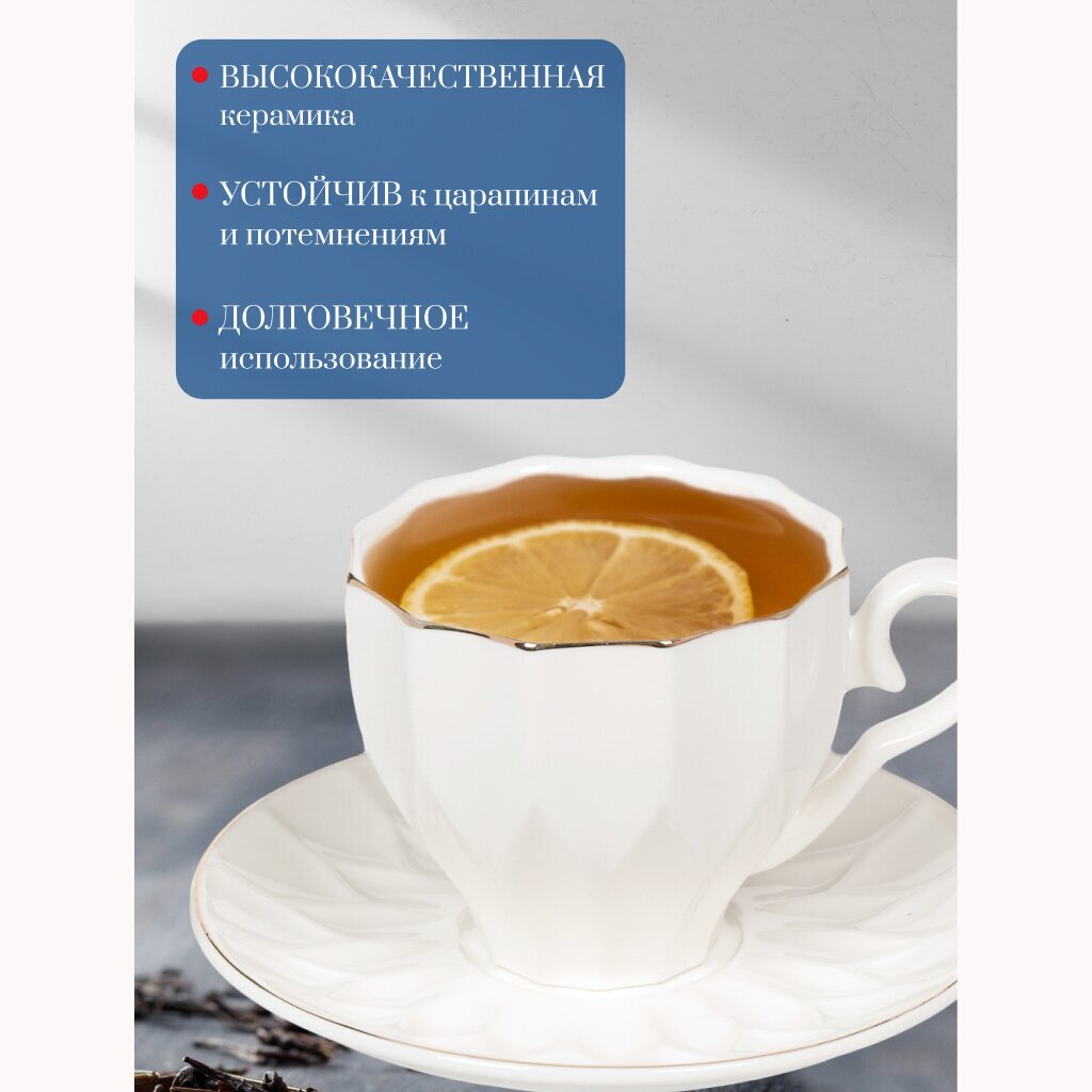 Чайный сервиз на 6 персон станет великолепным дополнением праздничного стола. Такой набор изящно дополнит сервировку стола к чаепитию. Благодаря оригинальному дизайну и качеству исполнения, он станет замечательным подарком для ваших друзей и близких. Материал позволяет чаю продемонстрировать свои вкусовые качества в лучшем виде, благодаря чему вы сможете насладиться насыщенным и ароматным напитком, который долго не будет остывать.
