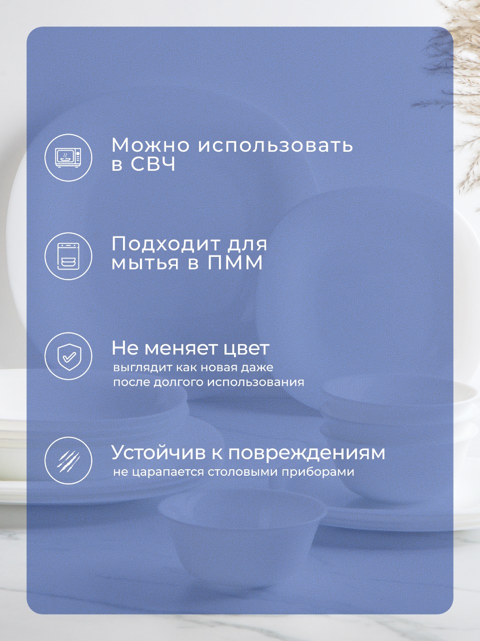 Если вы ищете, какой столовый сервиз выбрать для частого использования, обратите внимание на долговечность стеклокерамики: она не желтеет со временем, устойчива к сколам и подходит для микроволновки. В отличие от обычной керамики, такие тарелки легче по весу и дольше сохраняют внешний вид. Подарочная упаковка делает этот комплект отличным вариантом для подарка — на свадьбу, новоселье или юбилей.