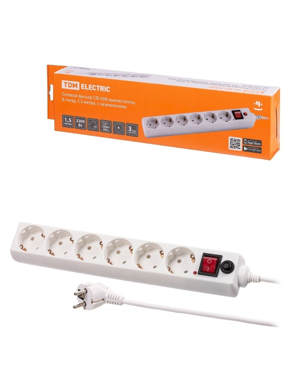 Вы можете приобрести «Сетевой фильтр 6 гнезд, 1.5 м, ПВС, 3х0.75 мм², с заземлением, 10 А, выключатель, белый, TDM Electric, СФ-06В, SQ1304-0019» и другие товары в нашем интернет-магазине в Твери по низким ценам и с бесплатным самовывозом.