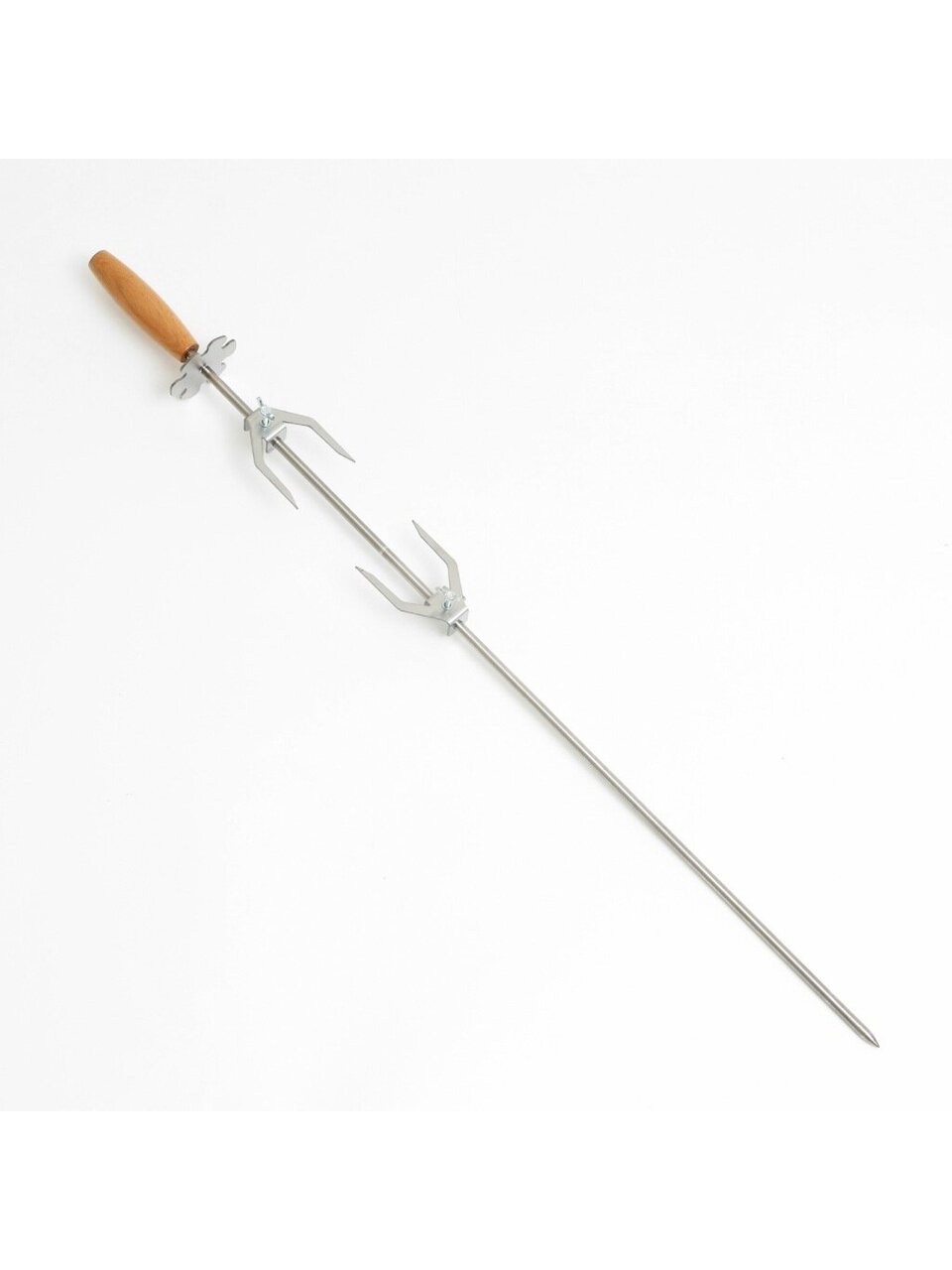 - Надежная конструкция: вертел состоит из двух притяжных вилок, которые фиксируются специальными фиксаторами и шайбами, обеспечивая безопасность и долговечность использования.