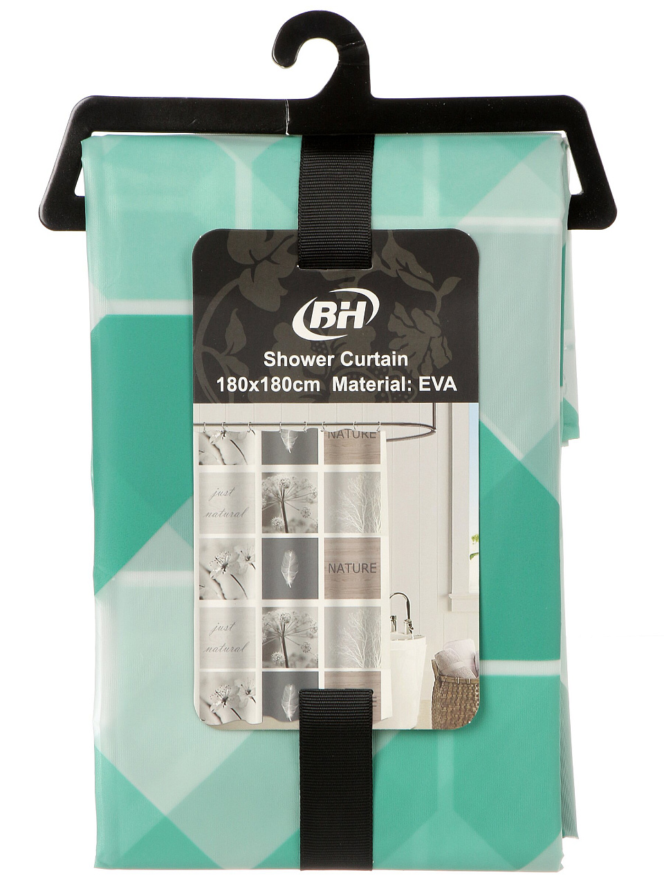 Штора для ванной 180х180 см Peva Элика-3: стильная бирюзовая защита от брызг, не требует ухода, подходит для дома и дачи — выгодно купить с кольцами