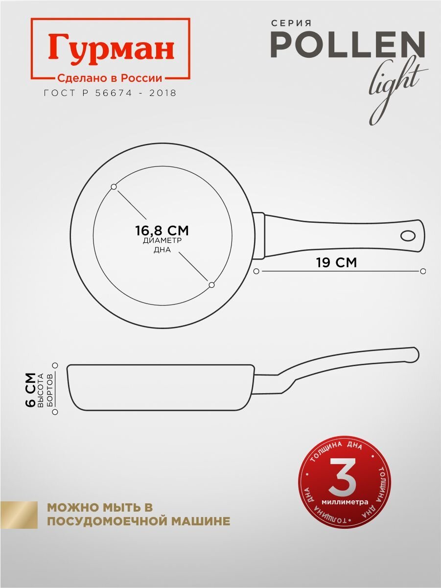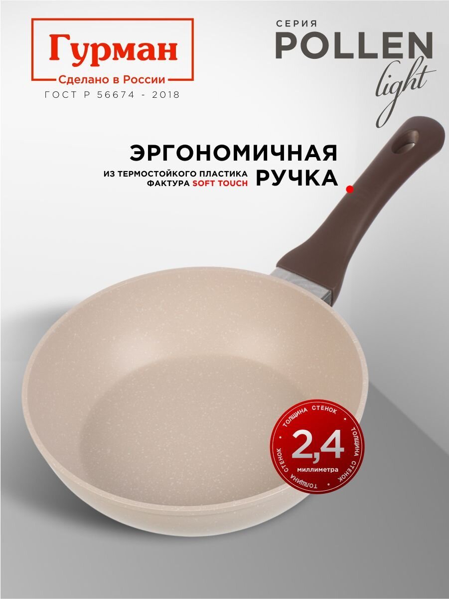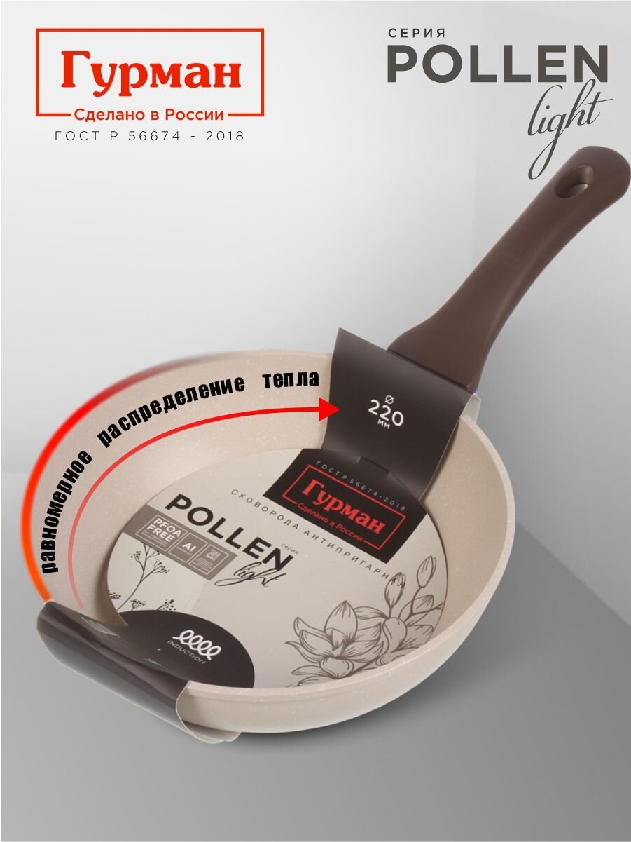 Сковорода литой алюминий 22 см Гурман Pollen light: антипригарное покрытие PFLUON, подходит для индукции. Решение для здорового и быстрого приготовления дома и на даче.