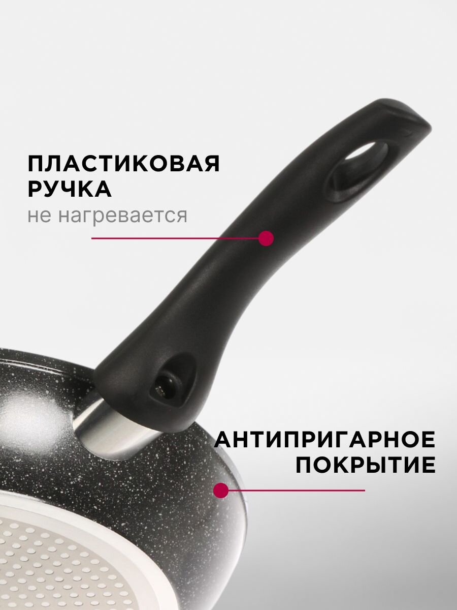 - Толстое дно 3,2 мм и прочный алюминий — равномерный нагрев, диаметр 28 см подходит для больших порций