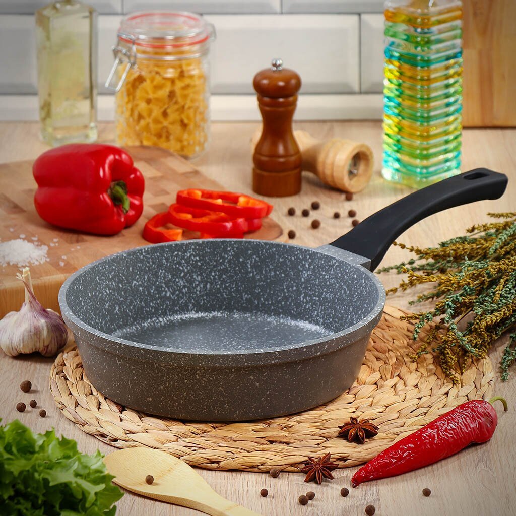 Сковорода из литого алюминия Estima коллекции Гурман — это оптимальный выбор, если вы ищете, какую сковороду купить для индукционной плиты или универсального использования на газу, стеклокерамике и электроплите. Благодаря гранитному антипригарному покрытию блюда не пригорают, а уход занимает минимум времени. Диаметр 26 см позволяет готовить порции для всей семьи, а прочное дно толщиной 4 мм гарантирует долгий срок службы без деформации.