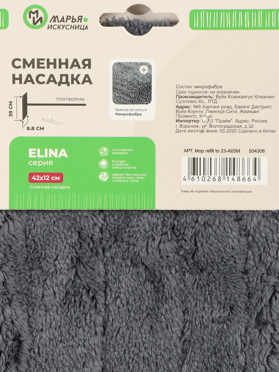 Вы можете приобрести «Сменная насадка для швабры, 42х12см, микрофибра, серый, Марья Искусница» и другие товары в нашем интернет-магазине в Армавире по низким ценам и с бесплатным самовывозом.