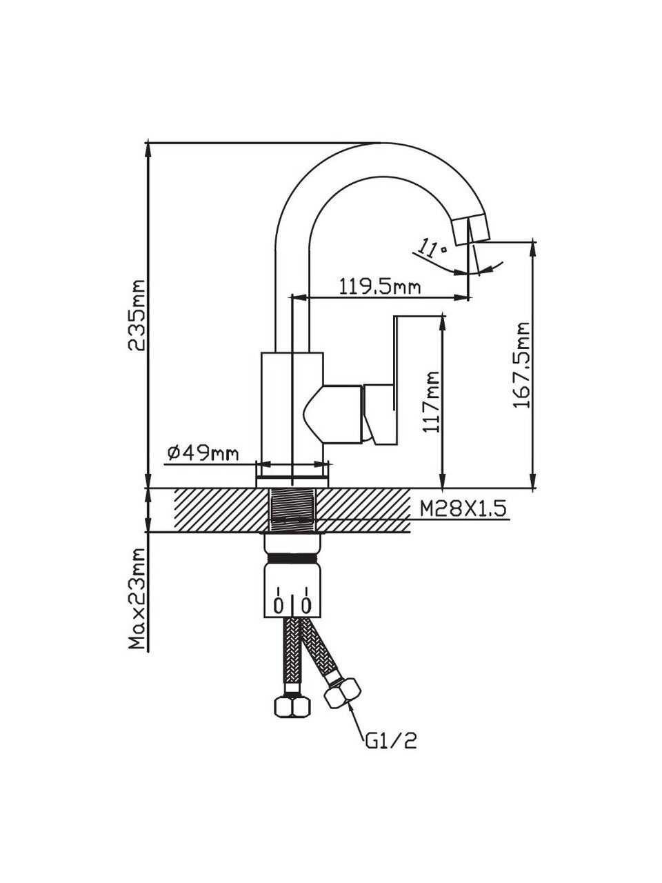 Высота излива — 16,7 см, длина — 11,9 см. Эти параметры подходят для большинства бытовых сценариев и обеспечивают комфортное пользование.