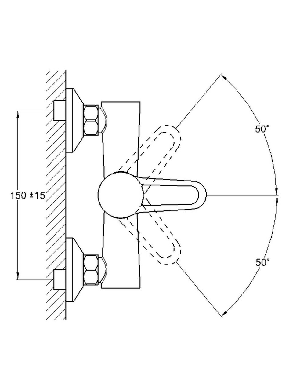 - Корпус из цинкового сплава, хромированная глянцевая поверхность, стандартное межосевое расстояние 150 мм