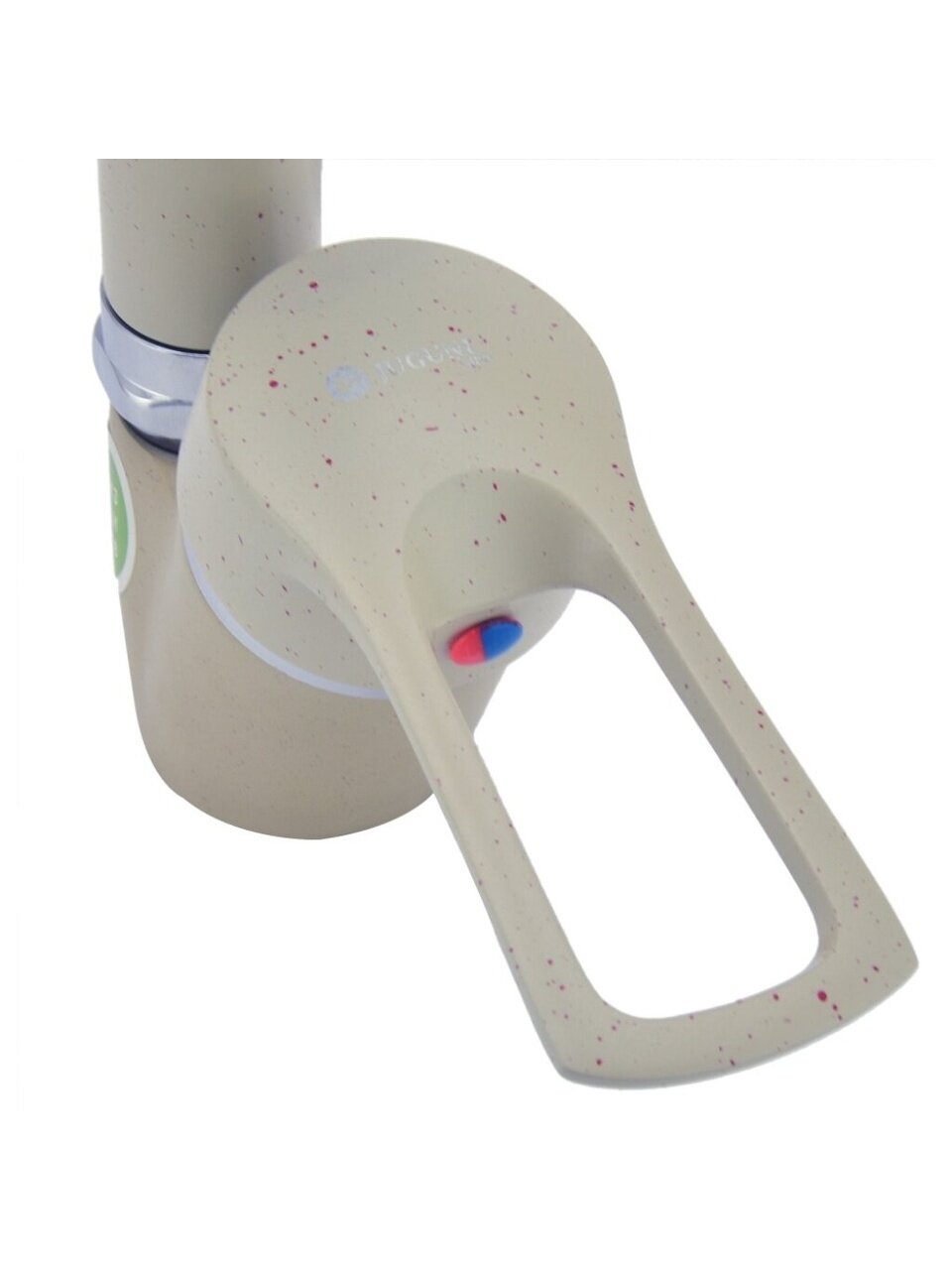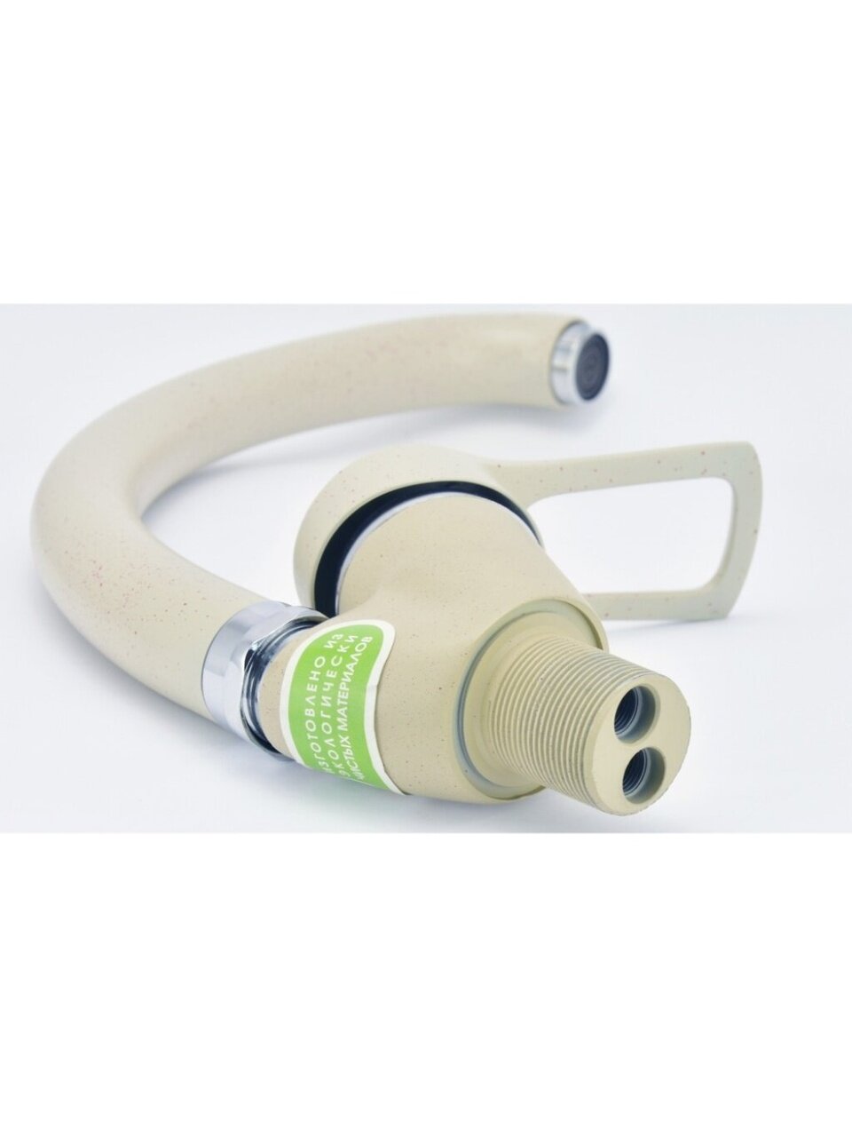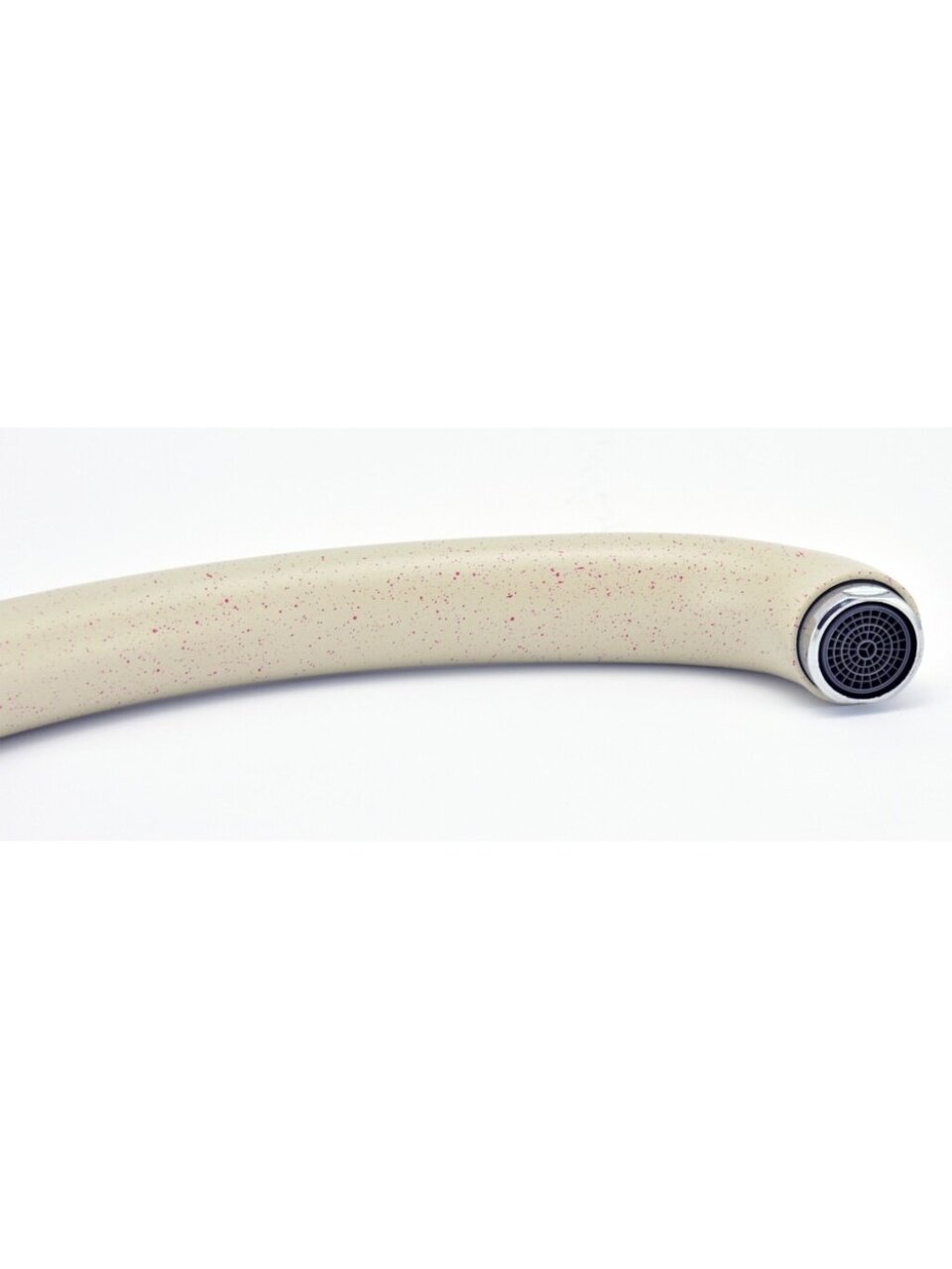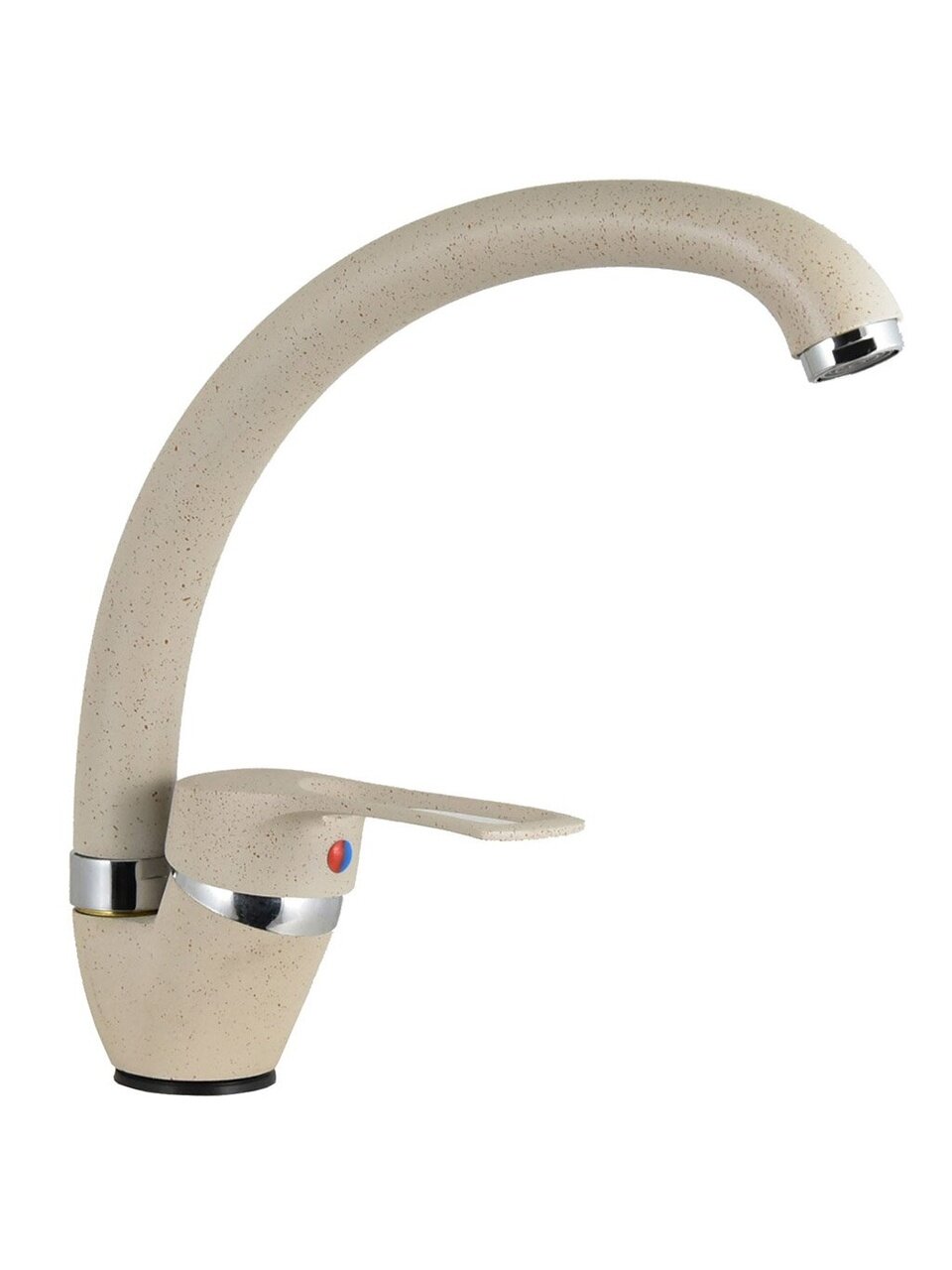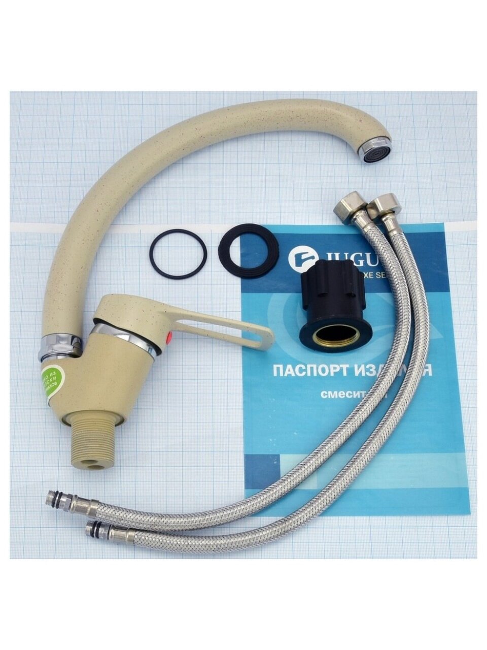 Смеситель для кухни Juguni 0402.450 — современное решение в бежевом цвете: надежный керамический картридж, высокий излив 18,5 см, гибкая подводка. Идеально для стильной кухни или дачи.