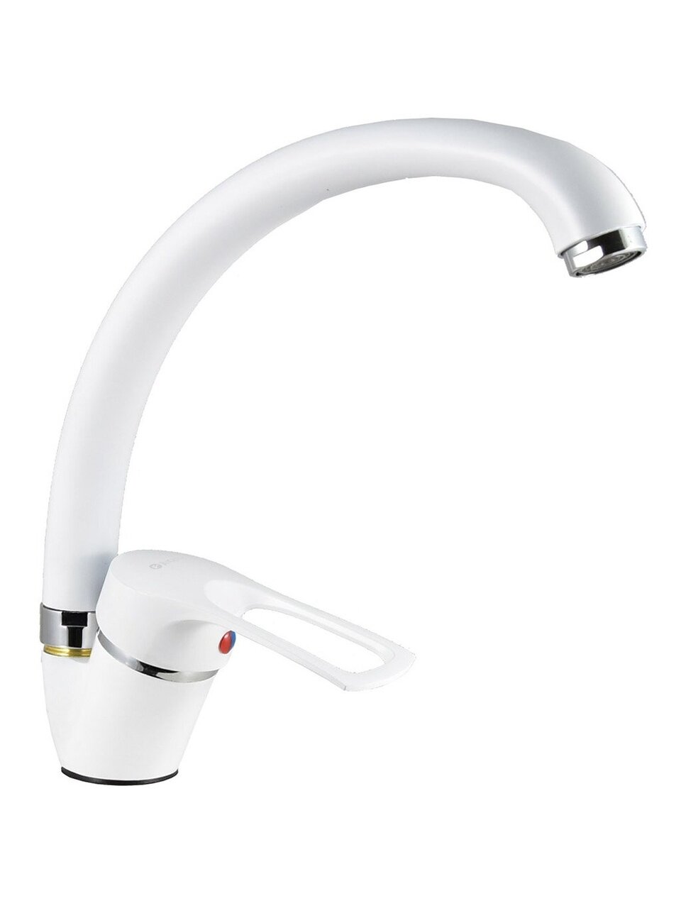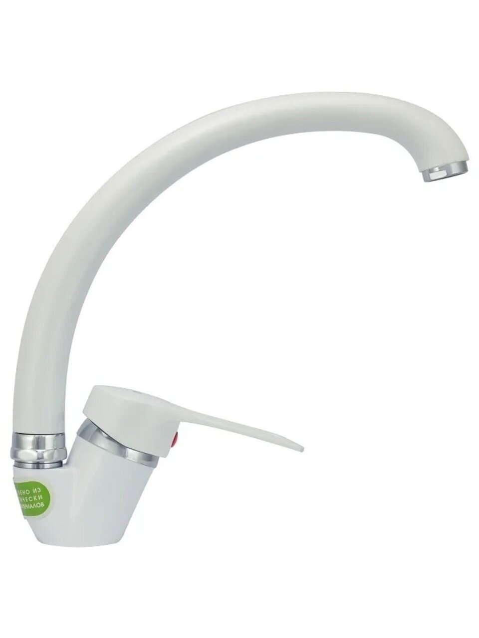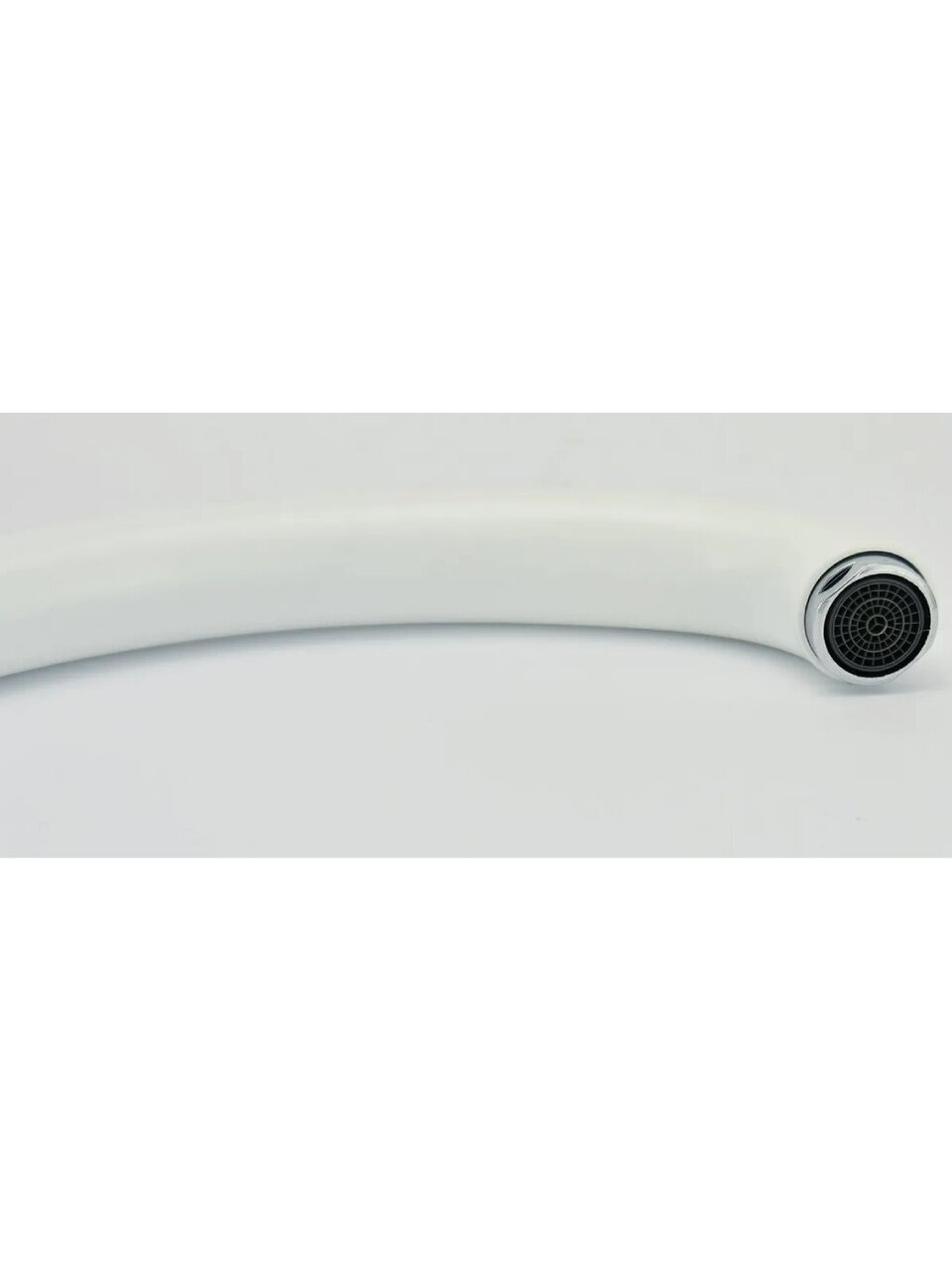 Смеситель для кухни Juguni 0402.449: белый матовый корпус, поворотный излив 21 см, надежный картридж — стиль и функциональность для современной кухни