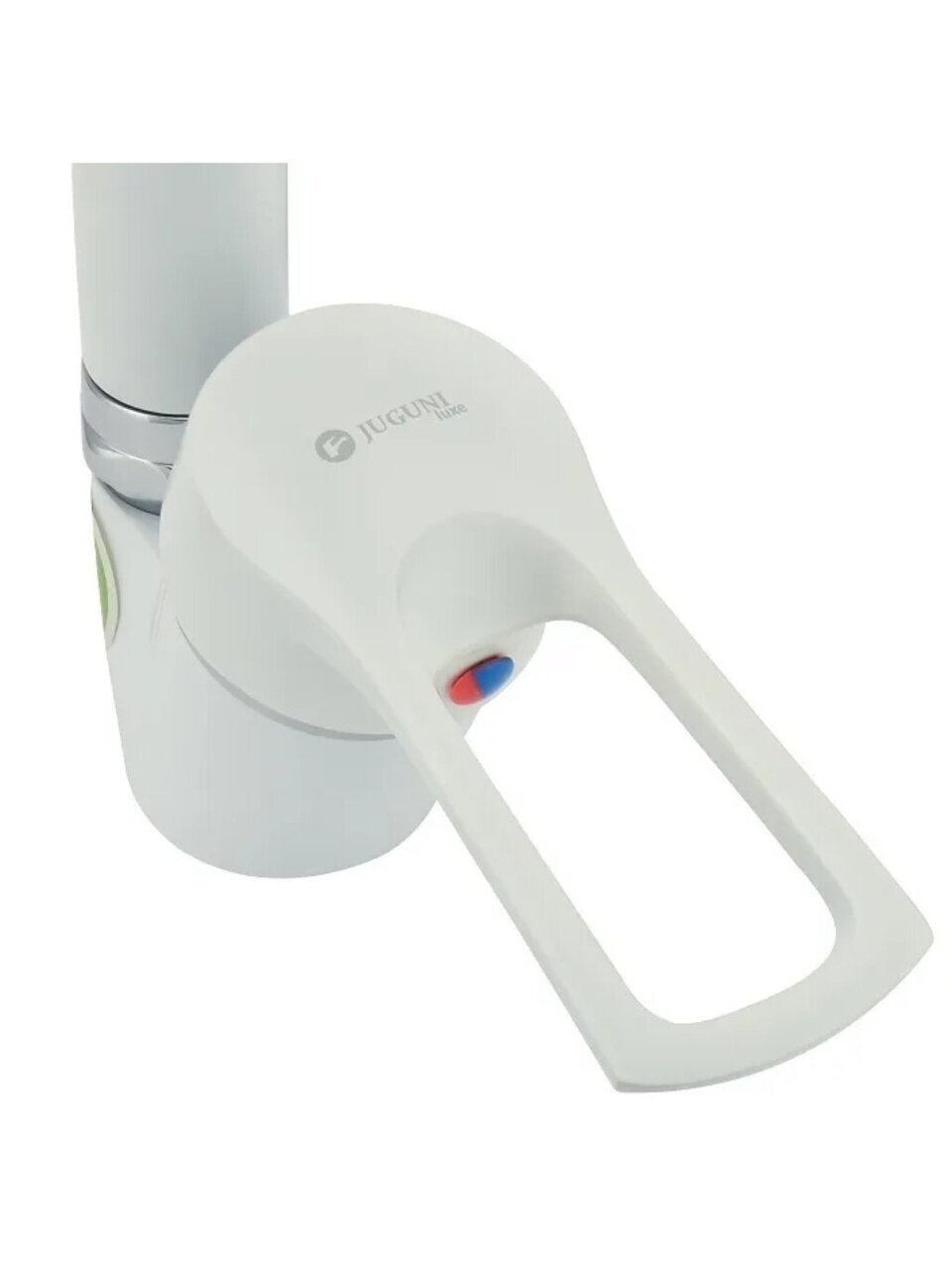 Если вы ищете, какой смеситель лучше для кухни в современном стиле или хотите купить недорого смеситель для дачи — Juguni 0402.449 сочетает в себе доступную цену, долговечность и удобство эксплуатации. Белый цвет и лаконичная форма делают его универсальным решением для любого пространства.